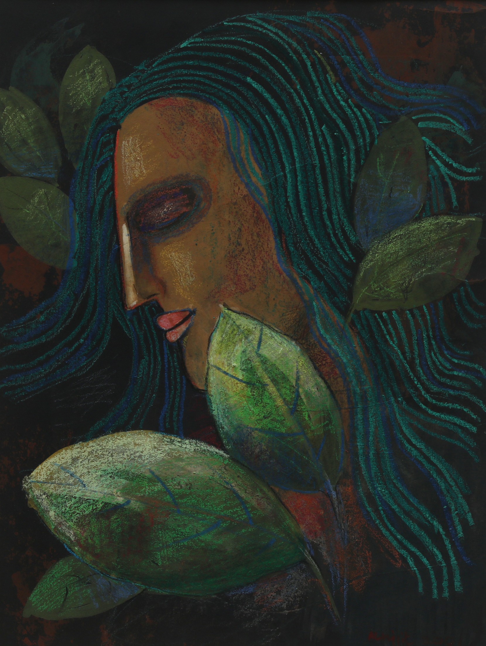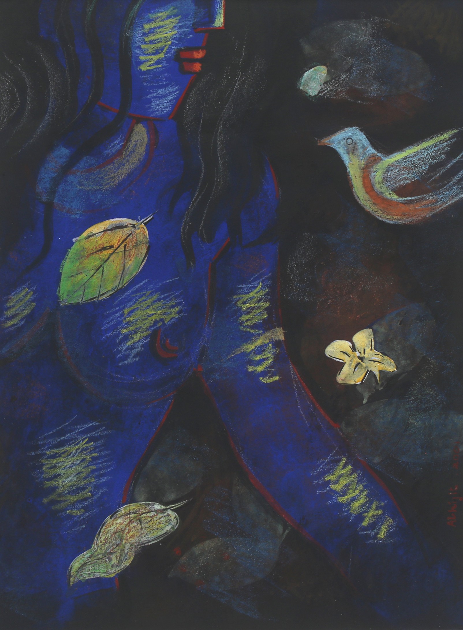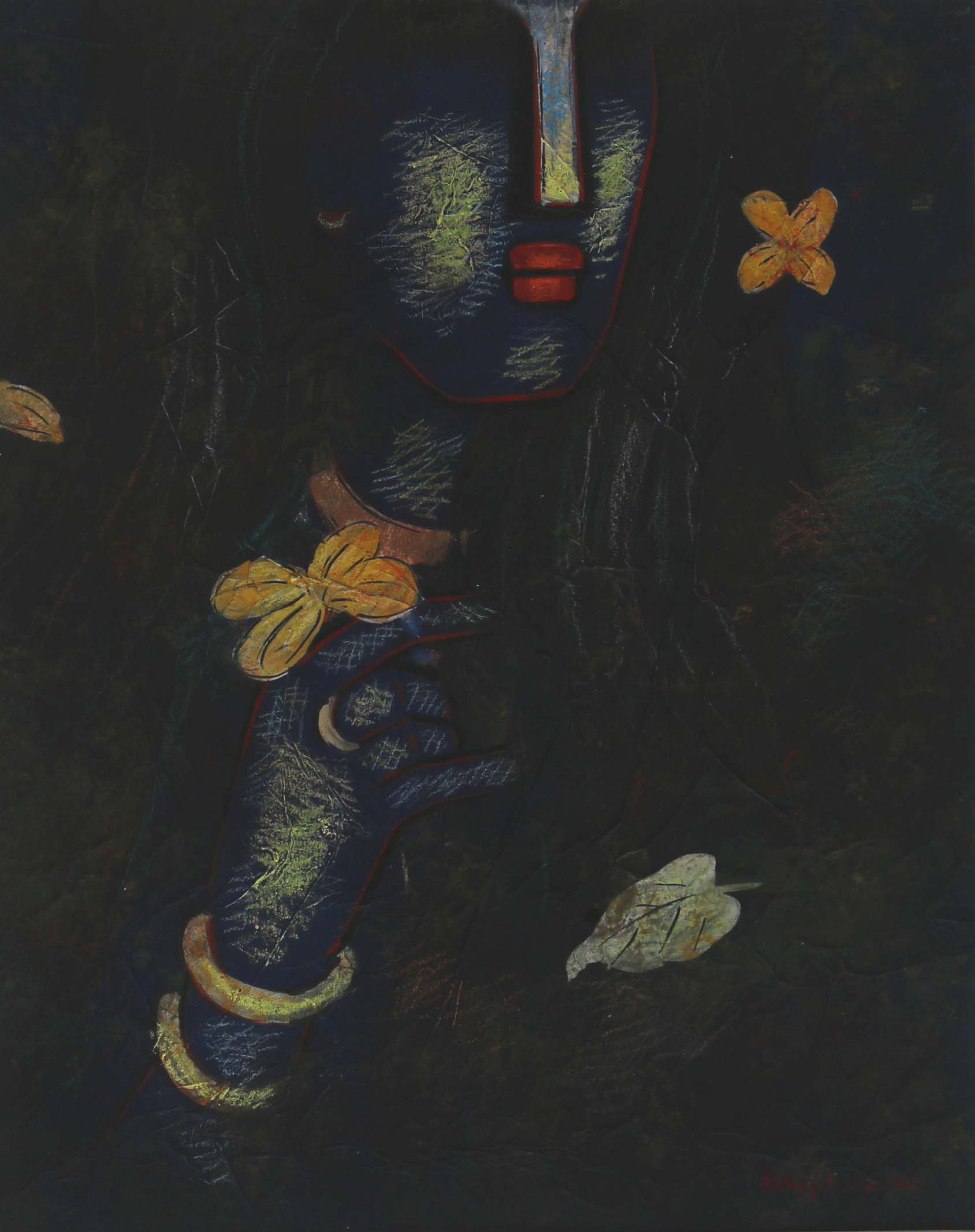 He paints on various subjects, such as, folk culture, women nudes, series of Buddha, human depictions along with animals, birds and different motifs in his compositions. Aesthetic and spiritual—both sides of a personal touch are present. He uses various mediums, like, acrylics, pastels, watercolours etc. with soft, bright and subtle colour palette.