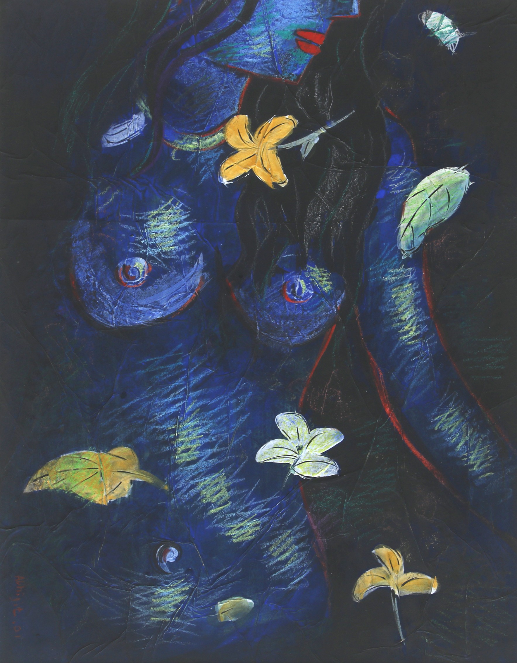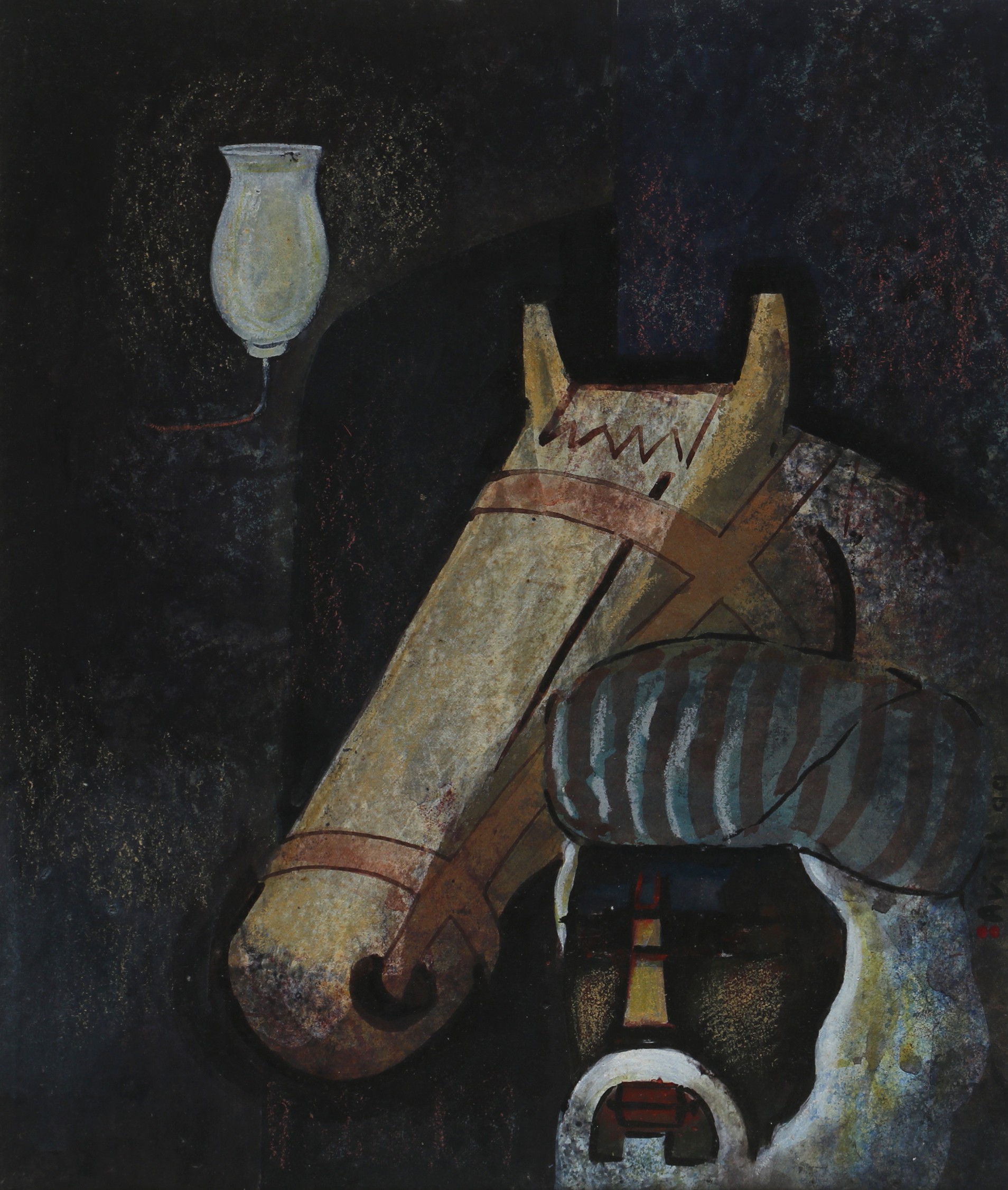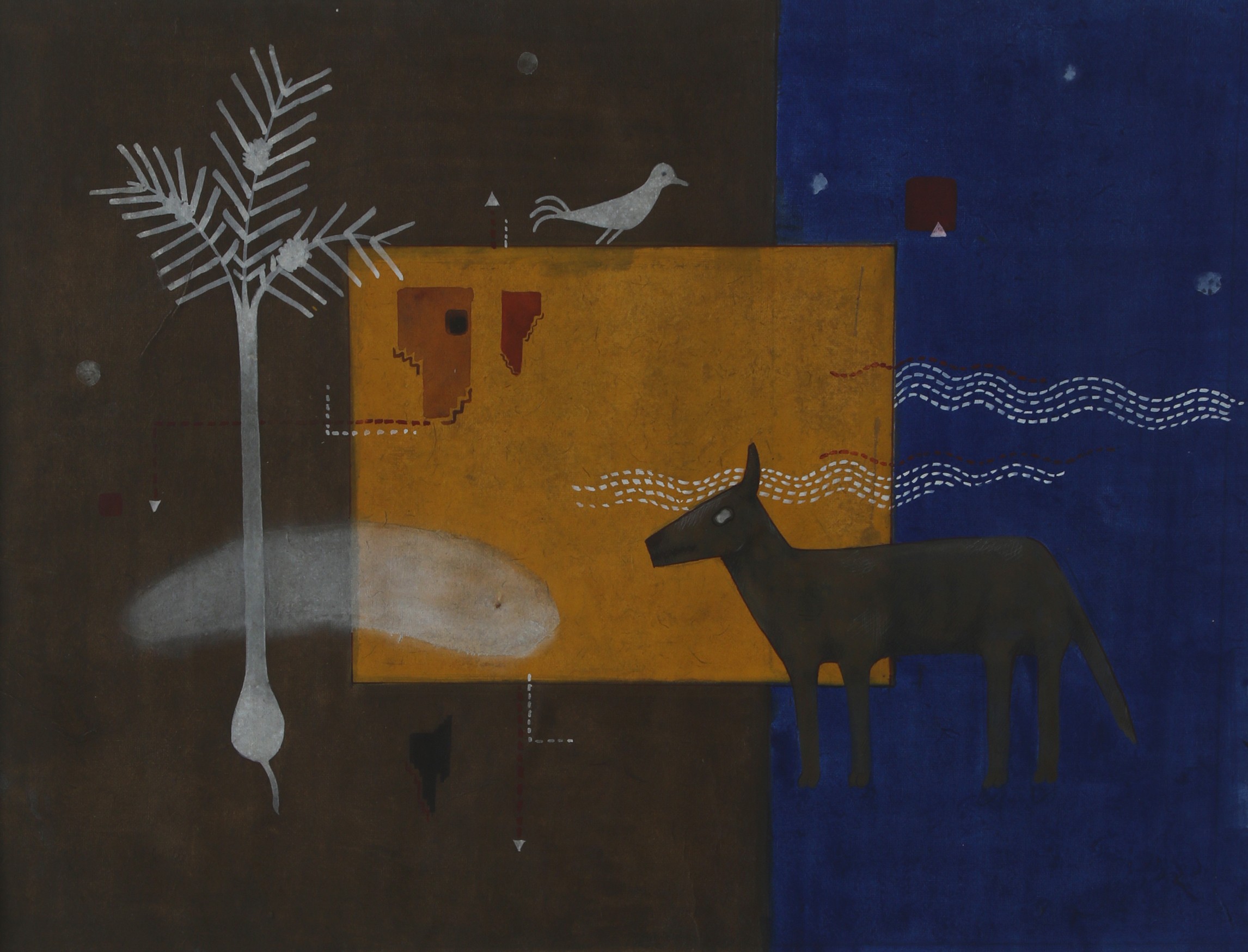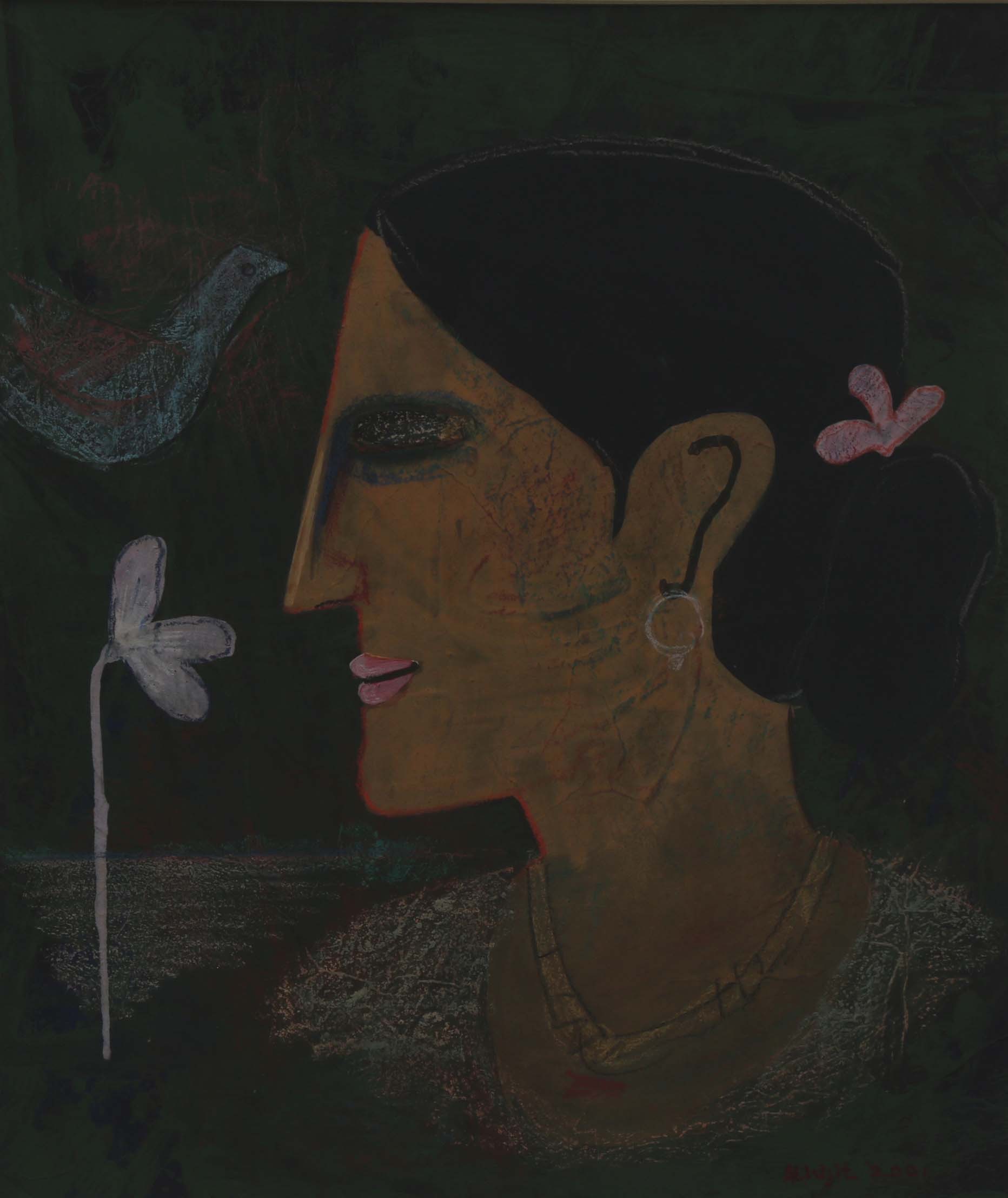 He paints on various subjects, such as, folk culture, women nudes, series of Buddha, human depictions along with animals, birds and different motifs in his compositions. Aesthetic and spiritual—both sides of a personal touch are present. He uses various mediums, like, acrylics, pastels, watercolours etc. with soft, bright and subtle colour palette.
