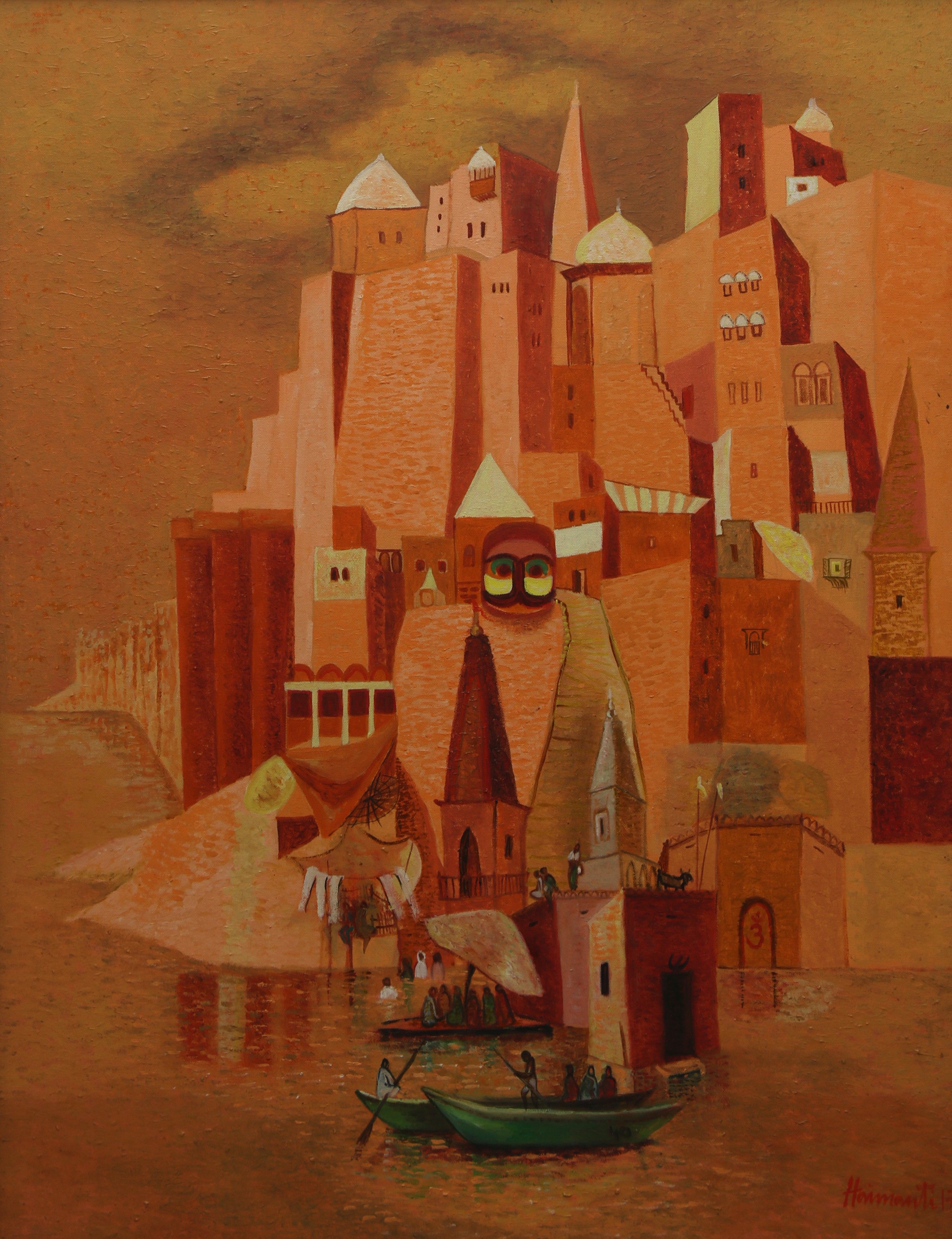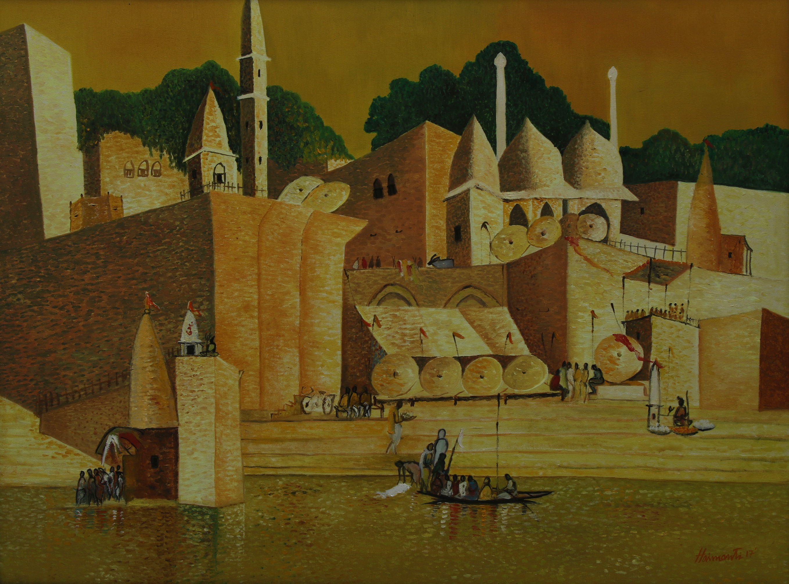 Haimanti Sen was born in Delhi 1964 and is a Delhi-based artist. She studied BFA from College of Arts, New Delhi. She is the daughter of eminent artist Arup Das. Sen has cultivated a unique artistic style, describing it as a fusion of pointillism with abstract elements. She carefully selects soothing colours to evoke a sense of mysticism. Some of her works incorporate symbolic motifs, adding layers of meaning. Her favourite themes are Banaras and water, which resonate deeply with her. By connecting with these subjects, she not only captures their essence but also strengthens her connection to her own roots. She primarily works in acrylics, charcoals, pens & inks, and watercolors and she often incorporates depictions of various places and monuments in her artworks.