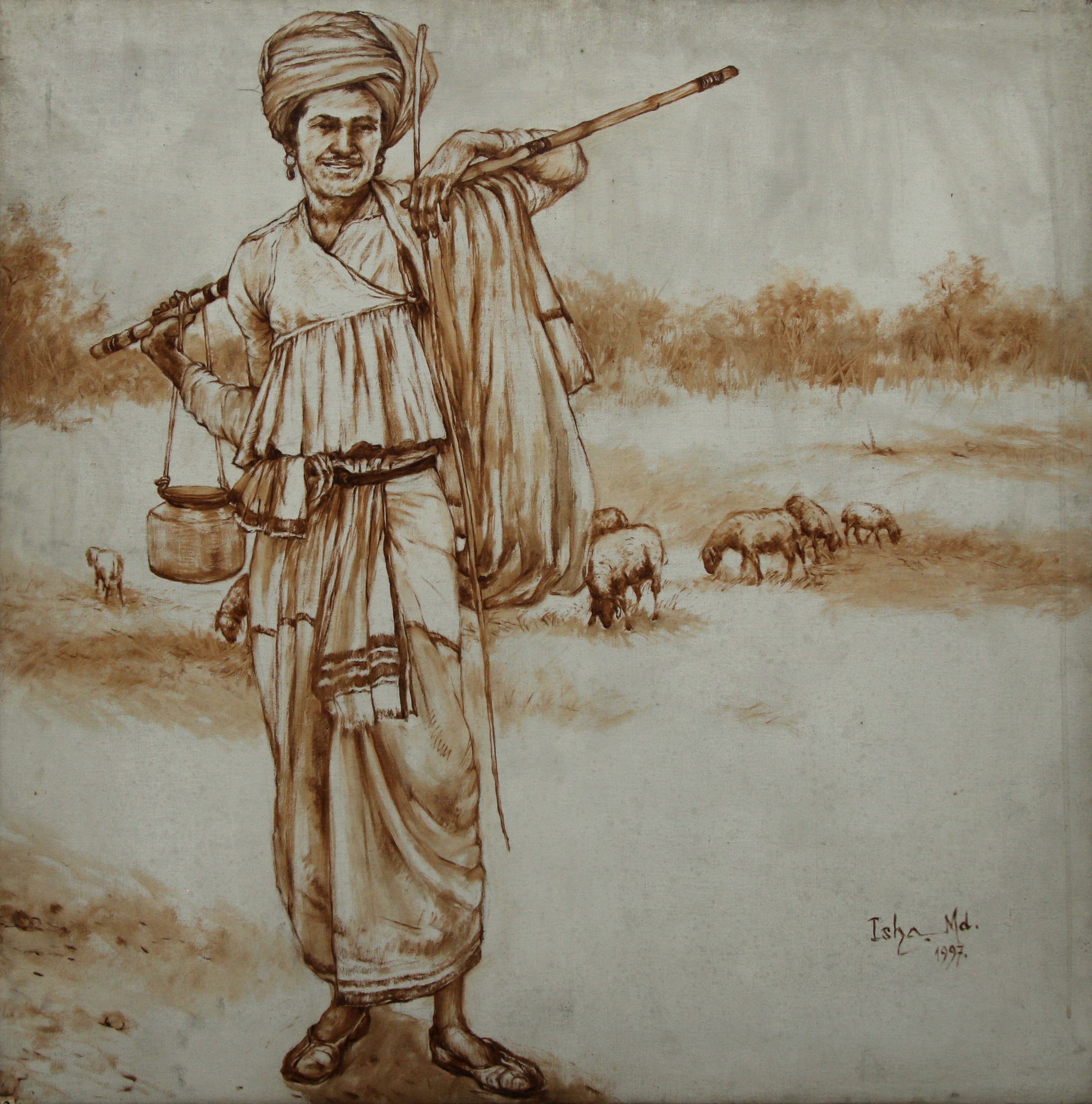 Isha Mohammad was born in Konnagar, Hooghly, West Bengal in 1933. He was renowned Indian modern artist who holds a Diploma in Drawing and Painting (Life, Nature & Murals) from the Govt. College of Art & Craft, Kolkata. He also received training in Graphic Art, Dusseldorf Academy, West Germany, where he met the German Expressionist group and was influenced by their work. In addition, he was the former principal of ‘Govt. College of Art’ and later, president of ‘Asiatic Society’.