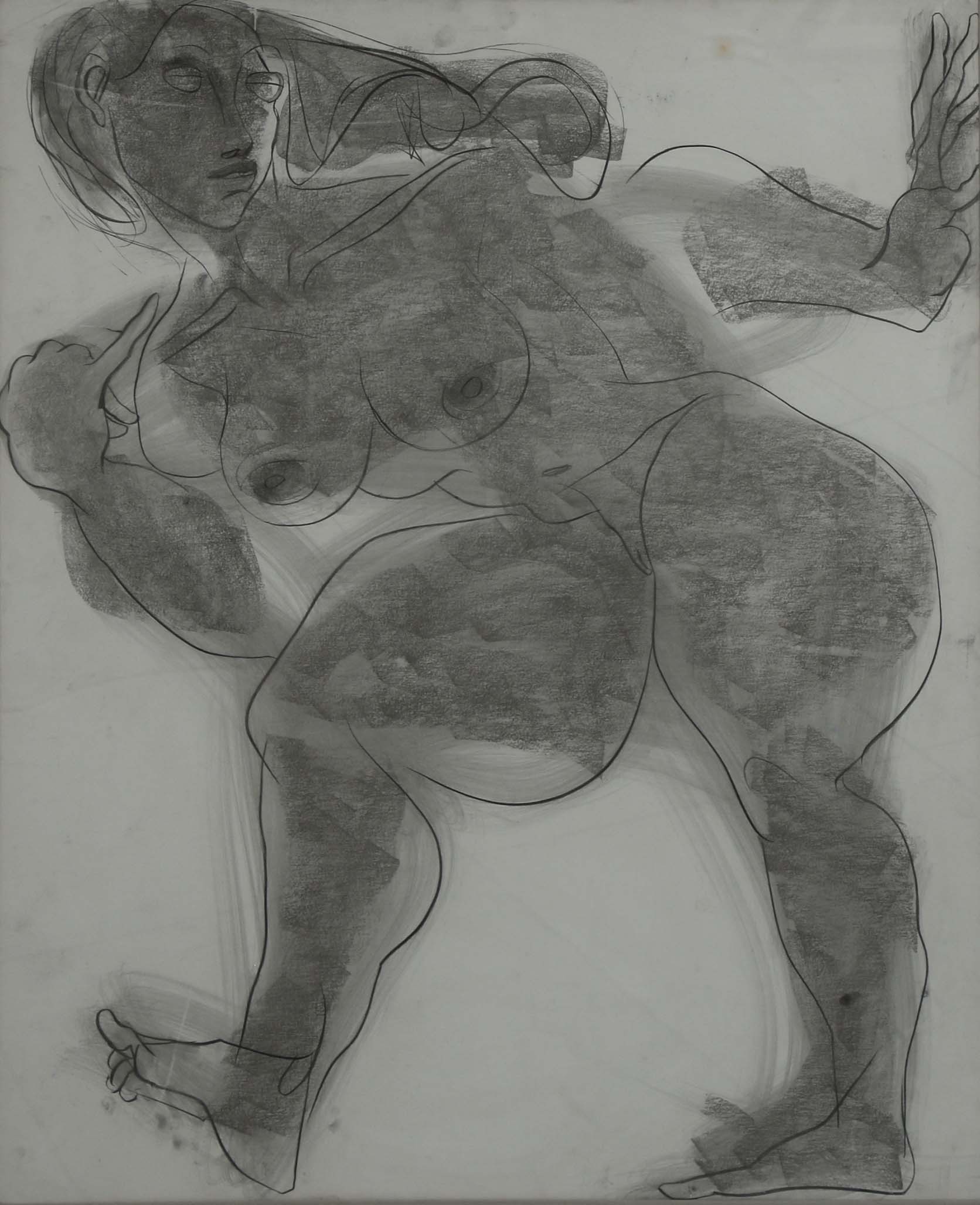 Das, a versatile artist, has been active in the Indian art scene for over forty years, creating paintings, murals, and sculptures. He is endlessly fascinated by the human body and is always seeking to capture dynamic figures with quick, linear brushwork. He is especially inspired by the complex emotions in man-woman relationships, including their pain and joy and mostly, he paints nude figures with powerful and rhythmic lines. He also paints scenes from daily life and depictions of gods and goddesses. He believes that painting is a very personal experience, and its results cannot always be shared with others and every element of life has inherent energy. This energy is evident in his paintings of men and women. Rhythmic discontinuities of color planes and rushing lines characterize his work, as if he draws subtleties of thoughts and feelings through the use of color.