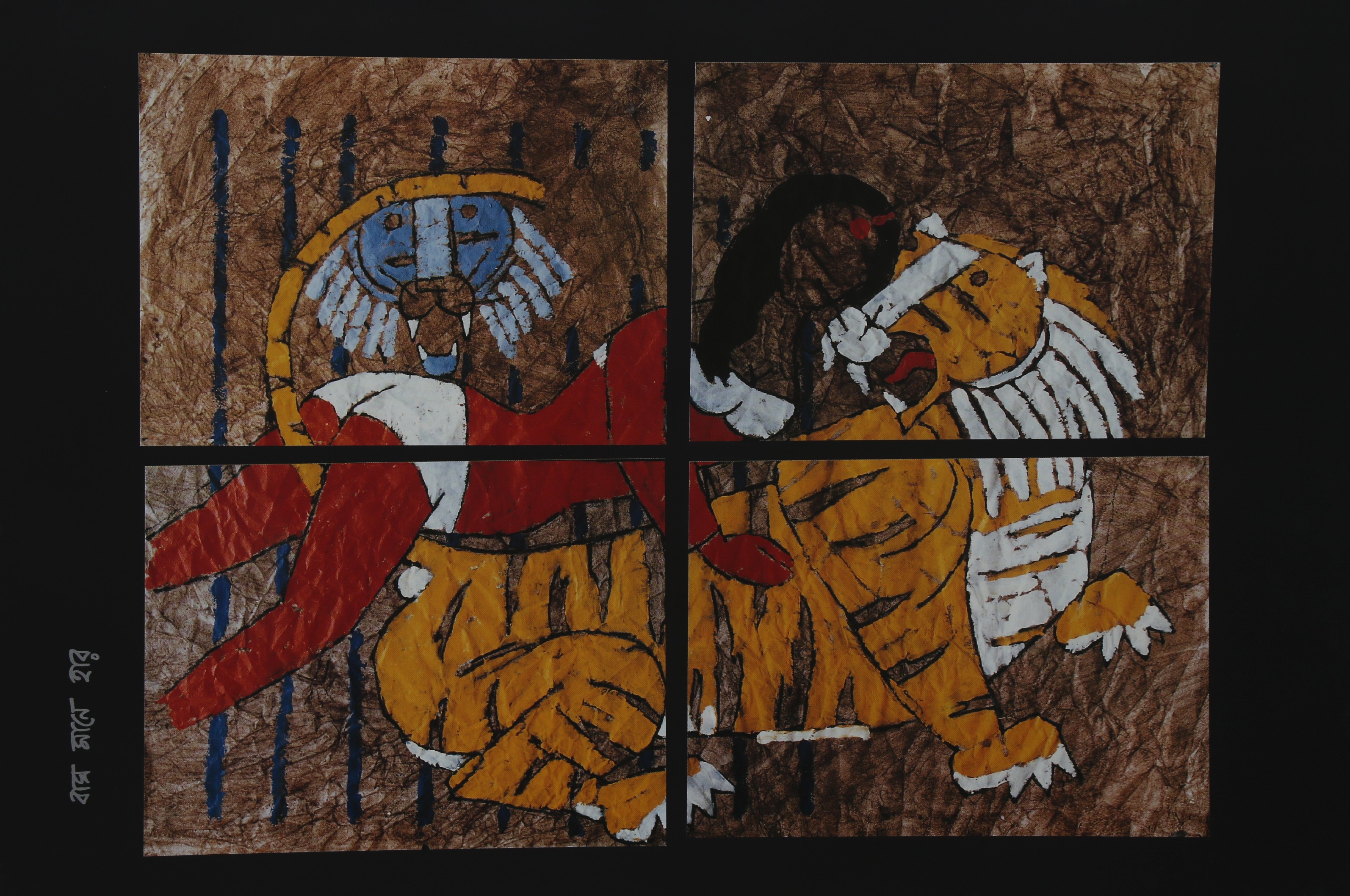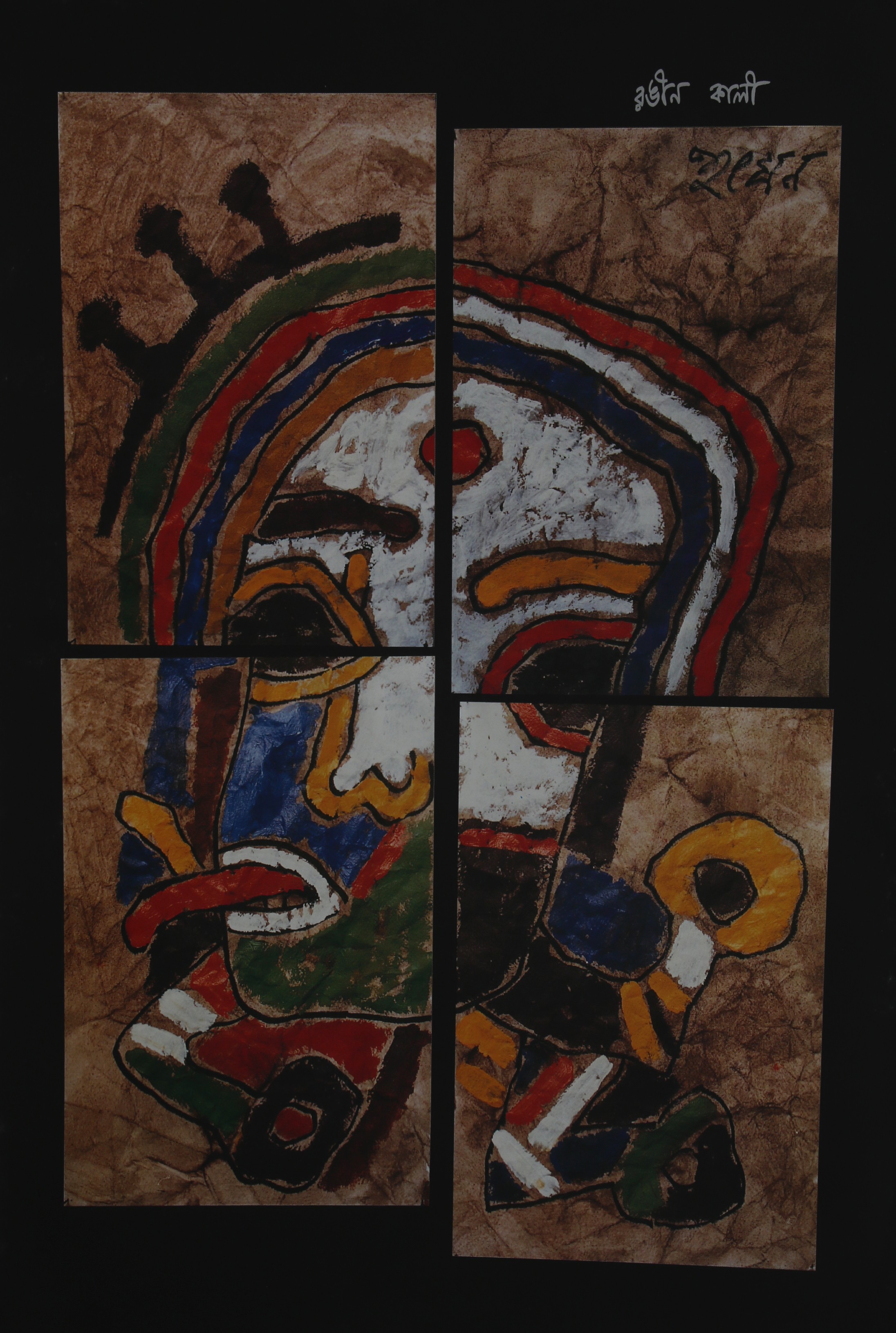Husain experimented with various mediums, such as, oils, acrylics, tempera, fresco, ink, gouache, encaustic, or casein, and watercolours. He used black bold line and patchy brushstrokes and thick colours, modifying the Cubist style, include a vibrant and bright colour palette. Husain was also known as “Picasso of India”. He experimented extensively with forms and formats of painting and also other forms of visual art.