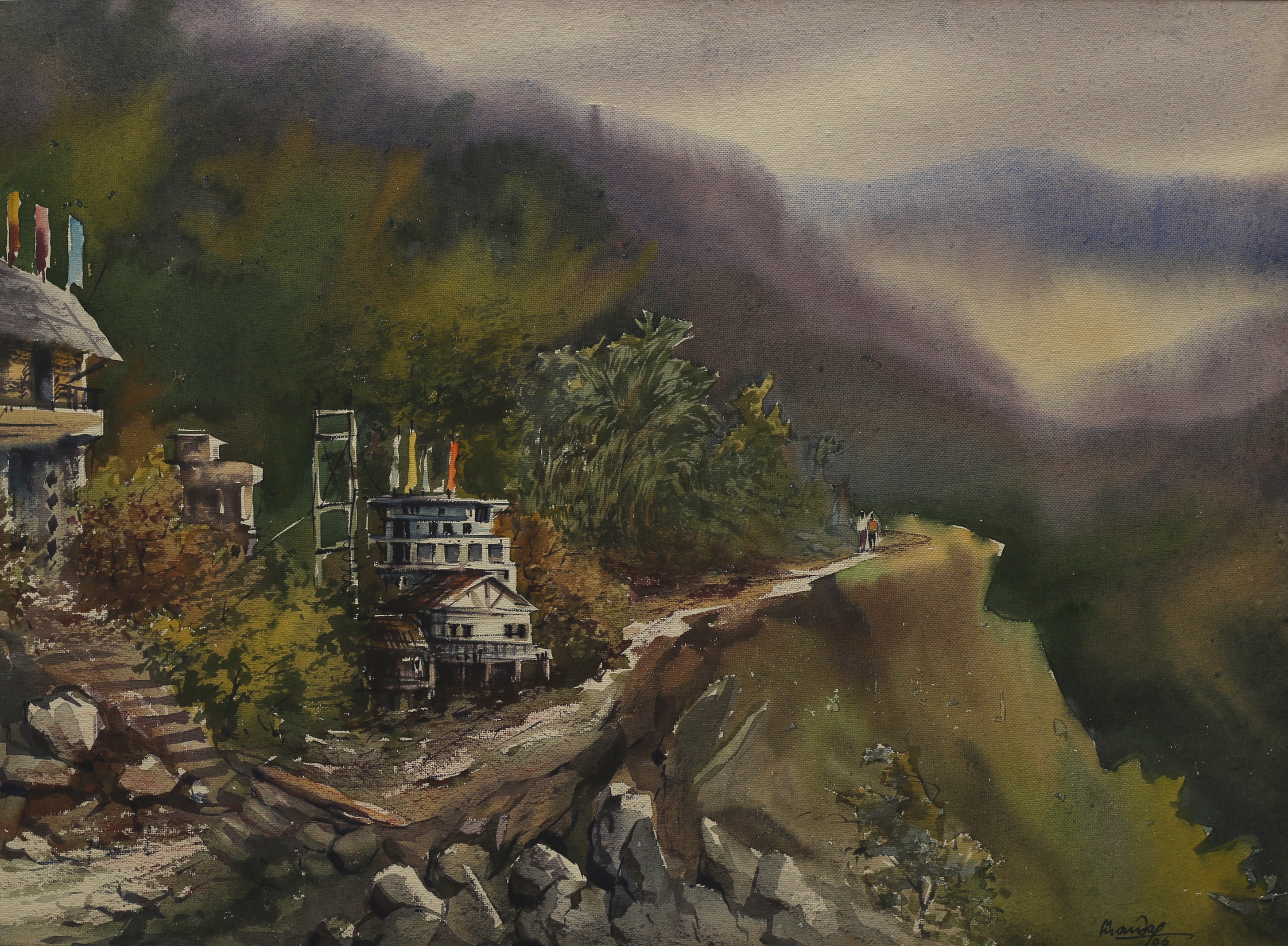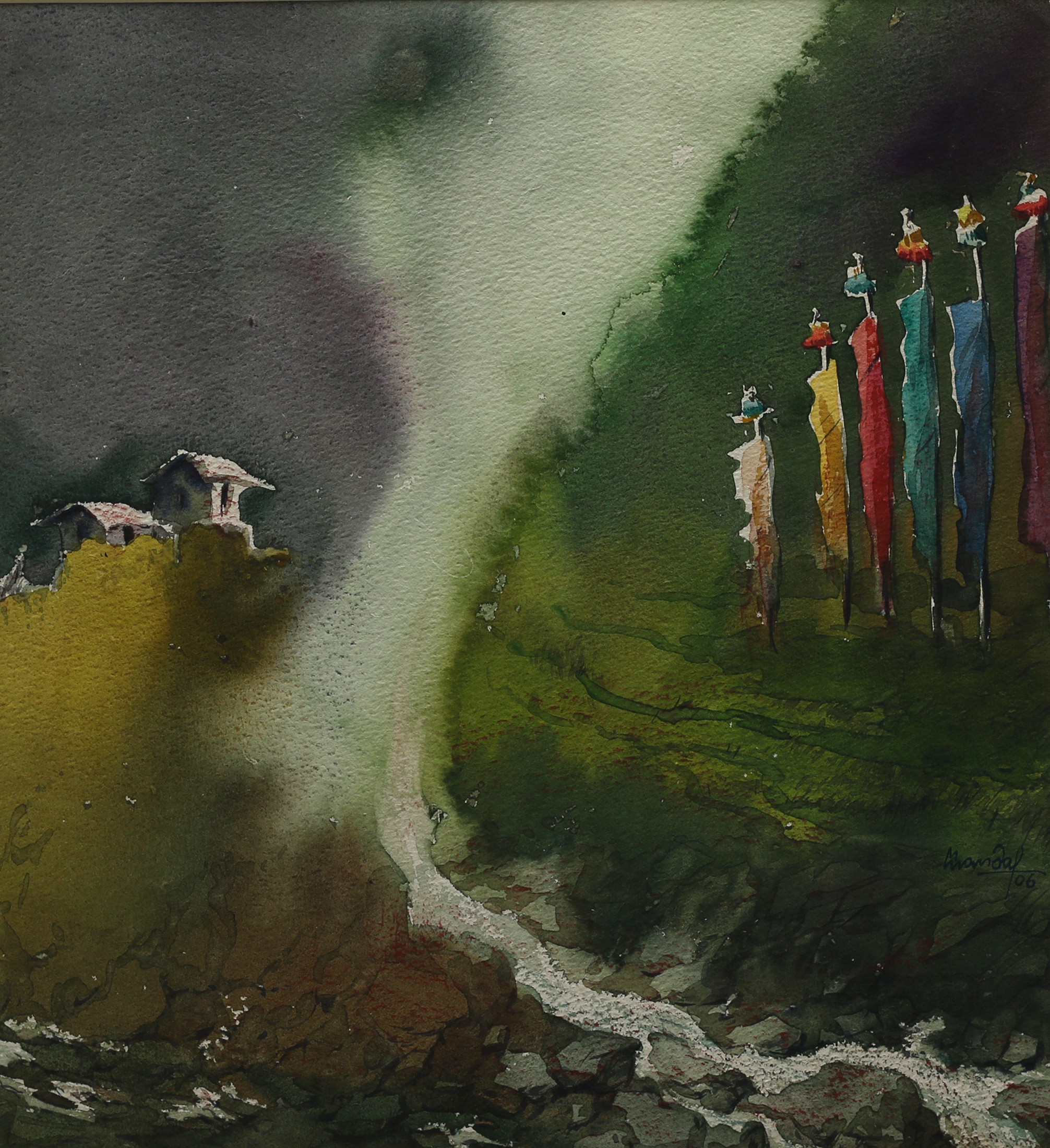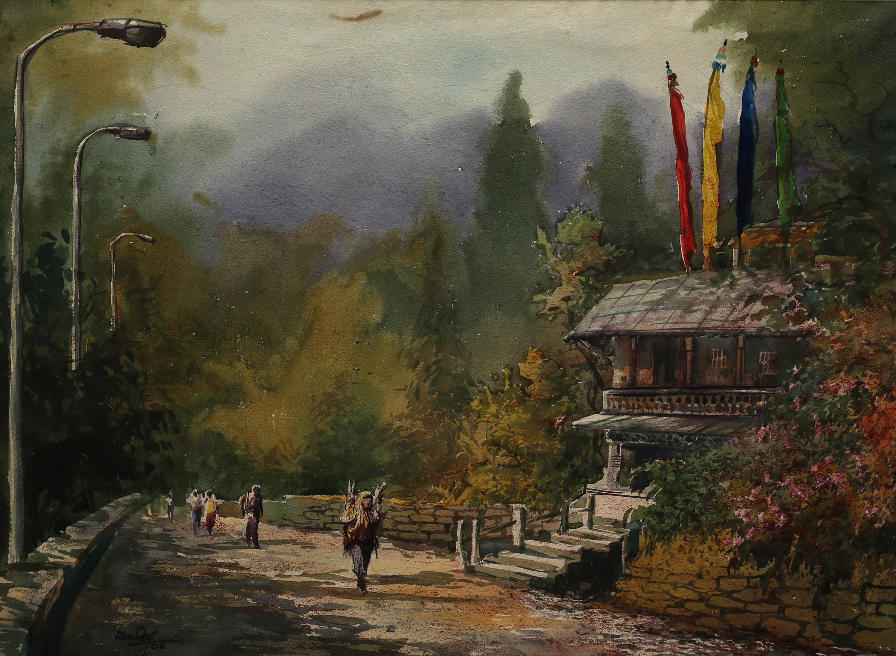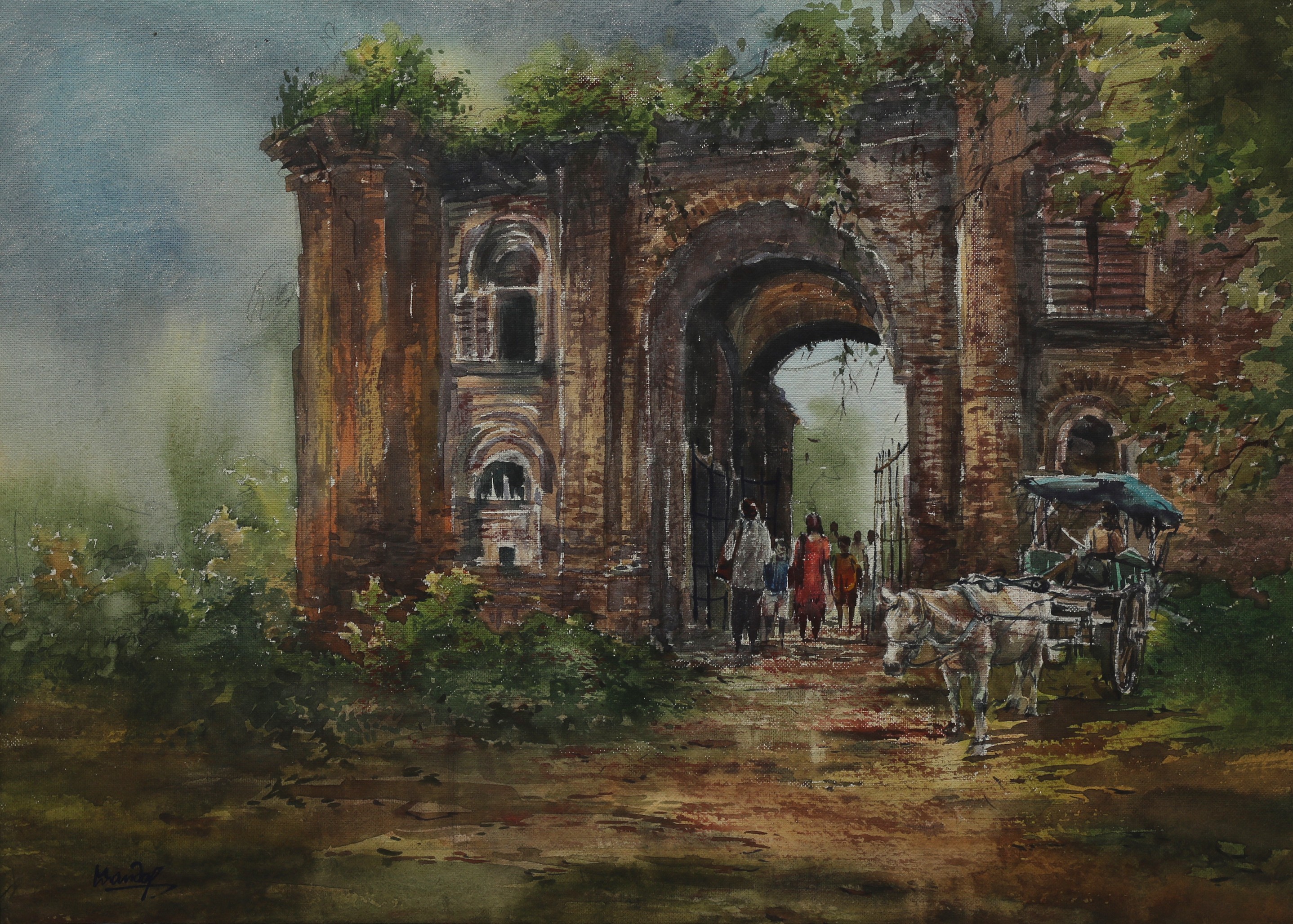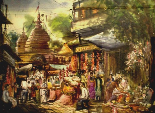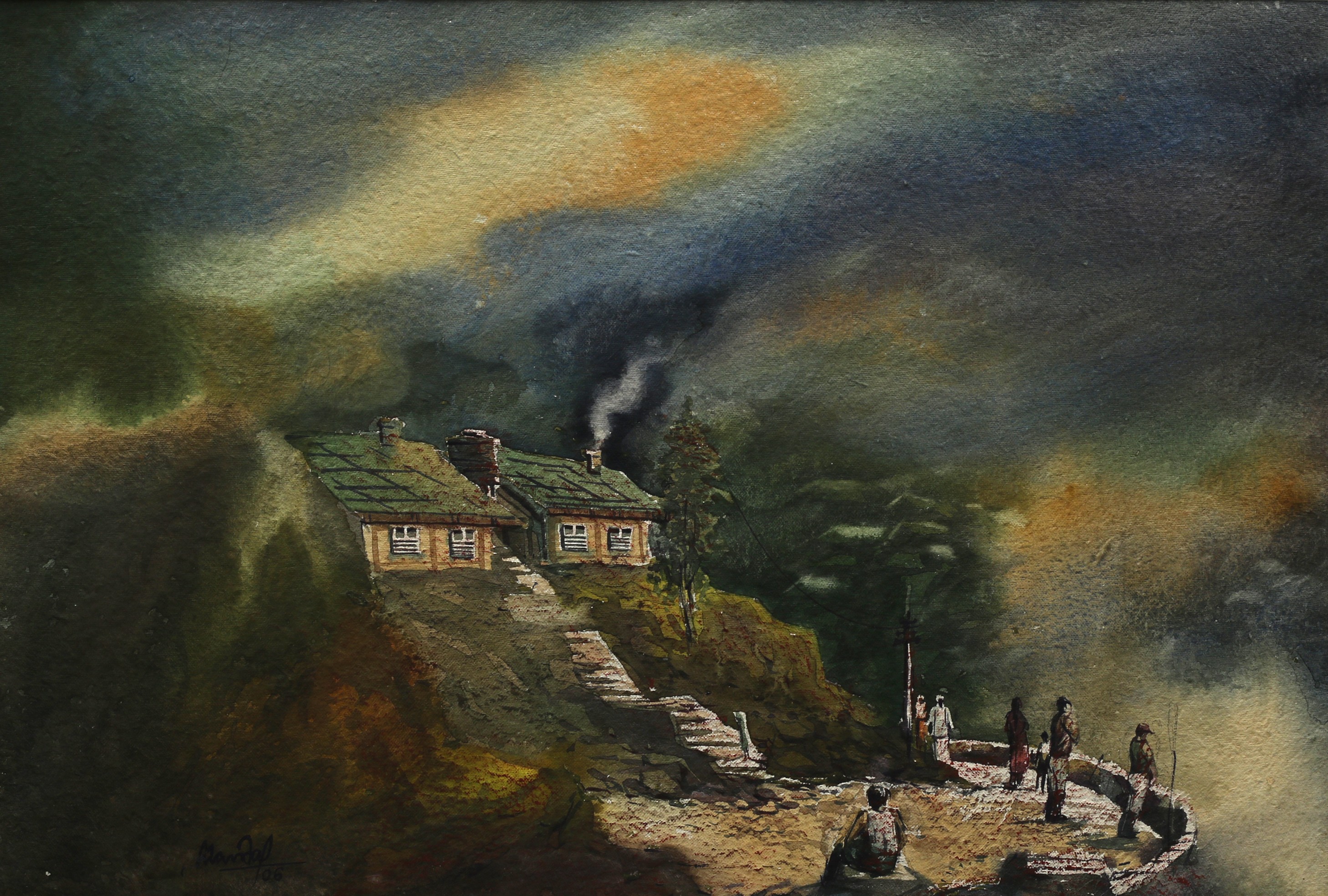 Mondal often paints in watercolour, freshness shown in his watercolour landscape paintings. Also painted the “Gangtok” series. His subjects are on day-today life of rural and urban areas. His compositions are calm and peaceful and soothing to the eyes.