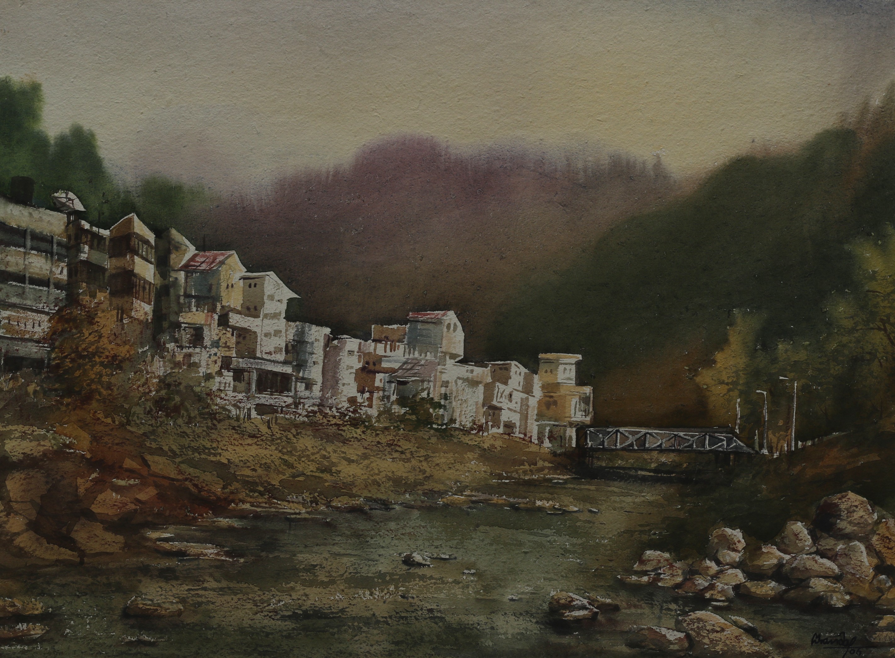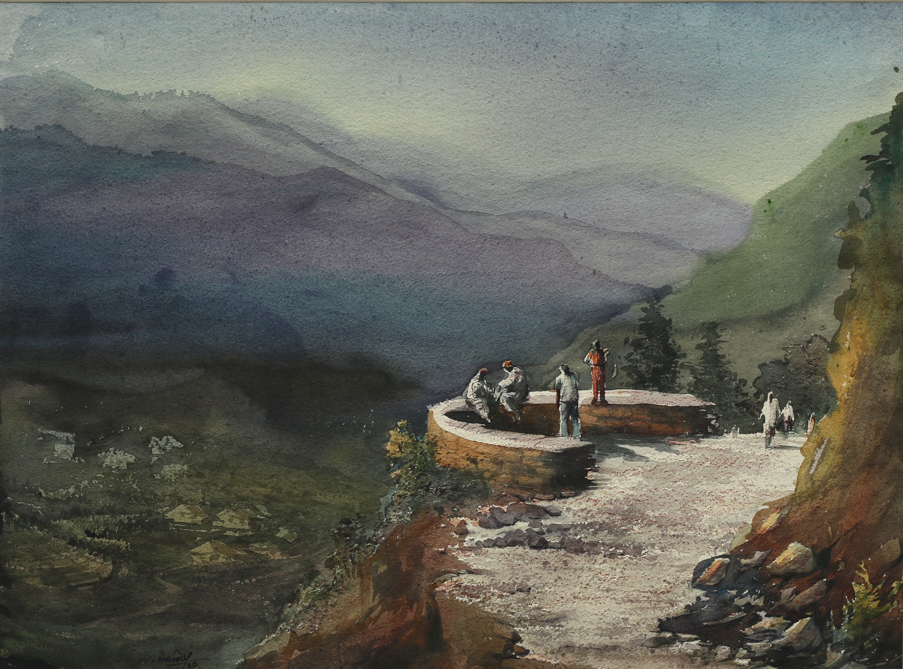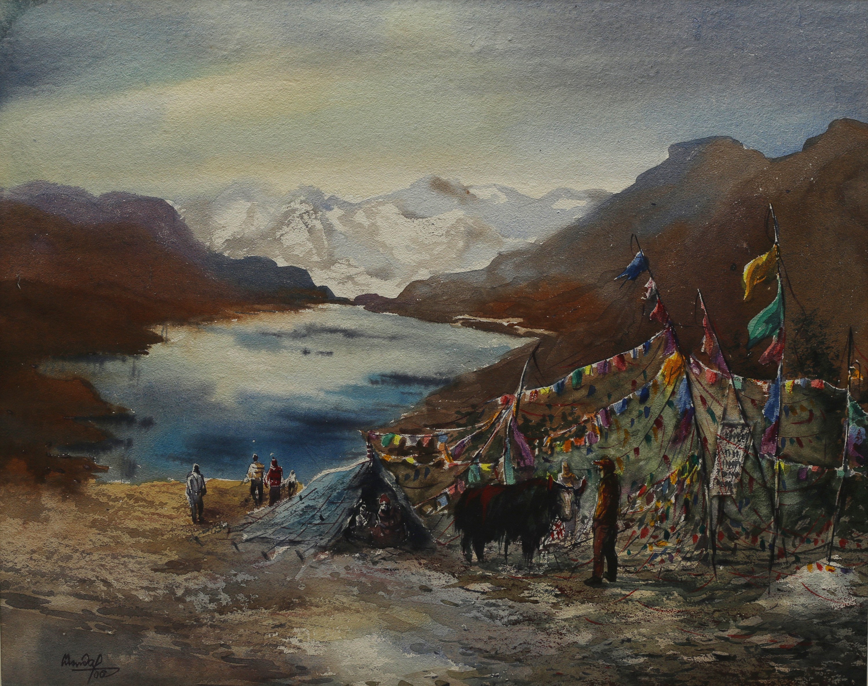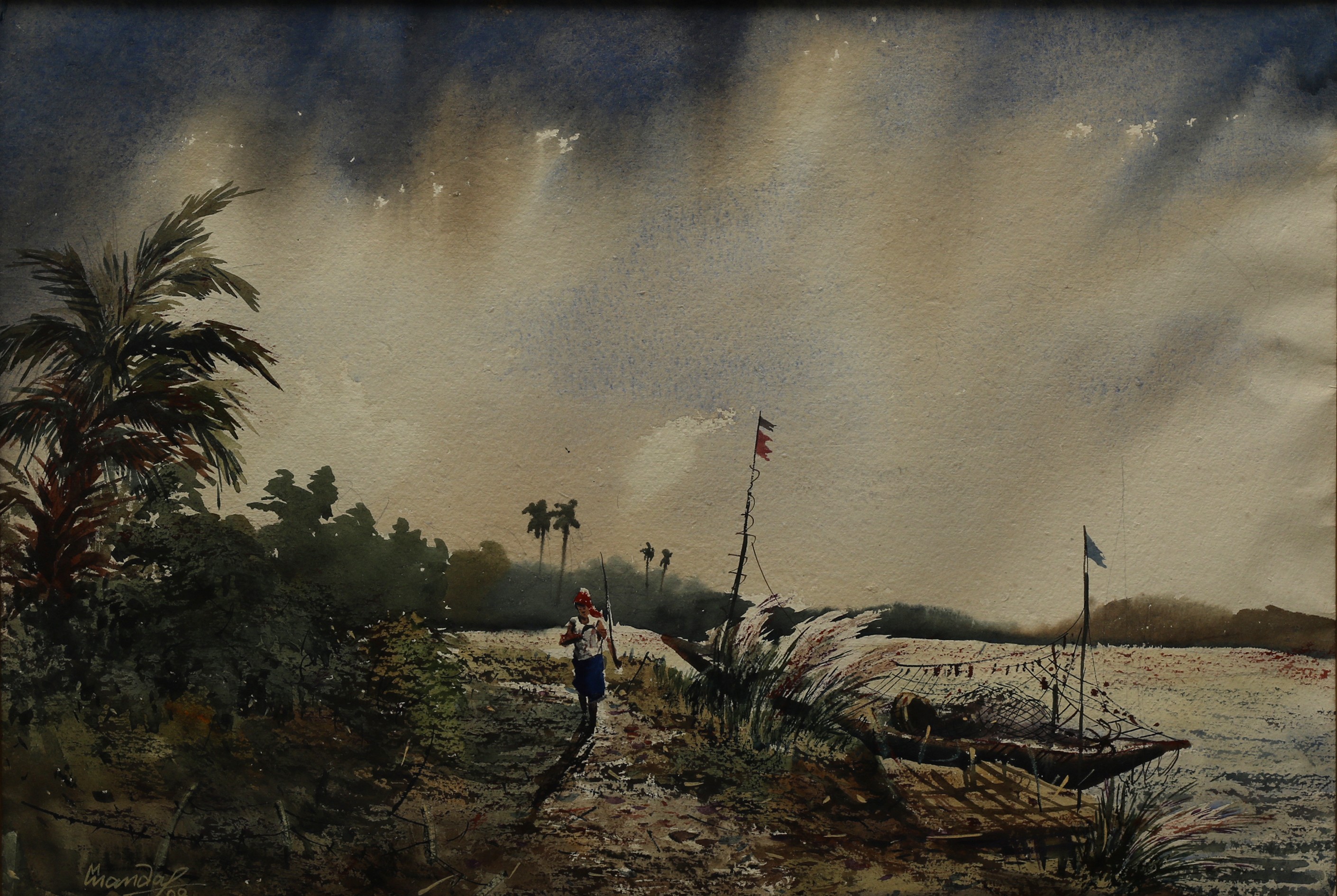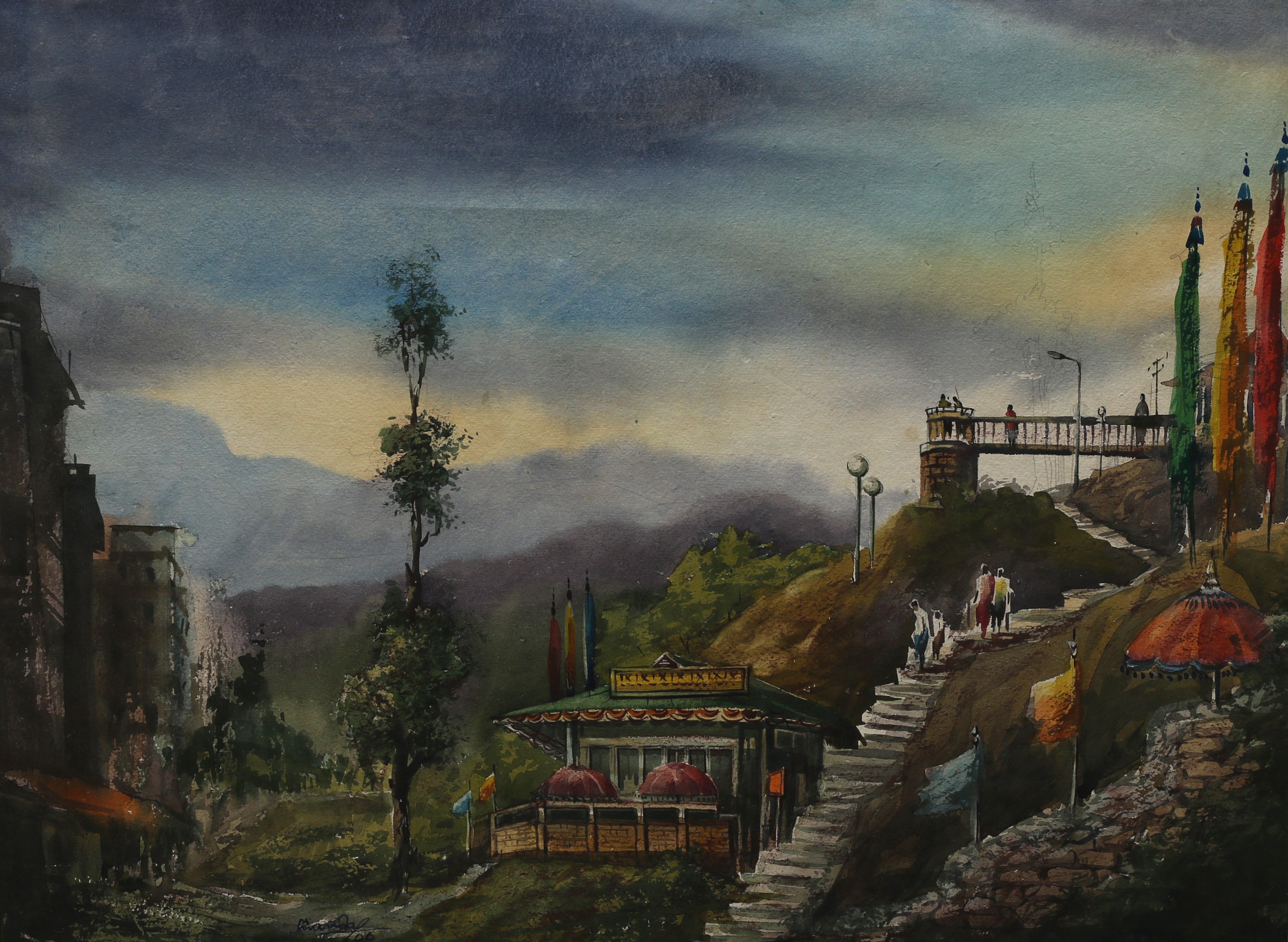Mondal often paints in watercolour, freshness shown in his watercolour landscape paintings. Also painted the “Gangtok” series. His subjects are on day-today life of rural and urban areas. His compositions are calm and peaceful and soothing to the eyes.