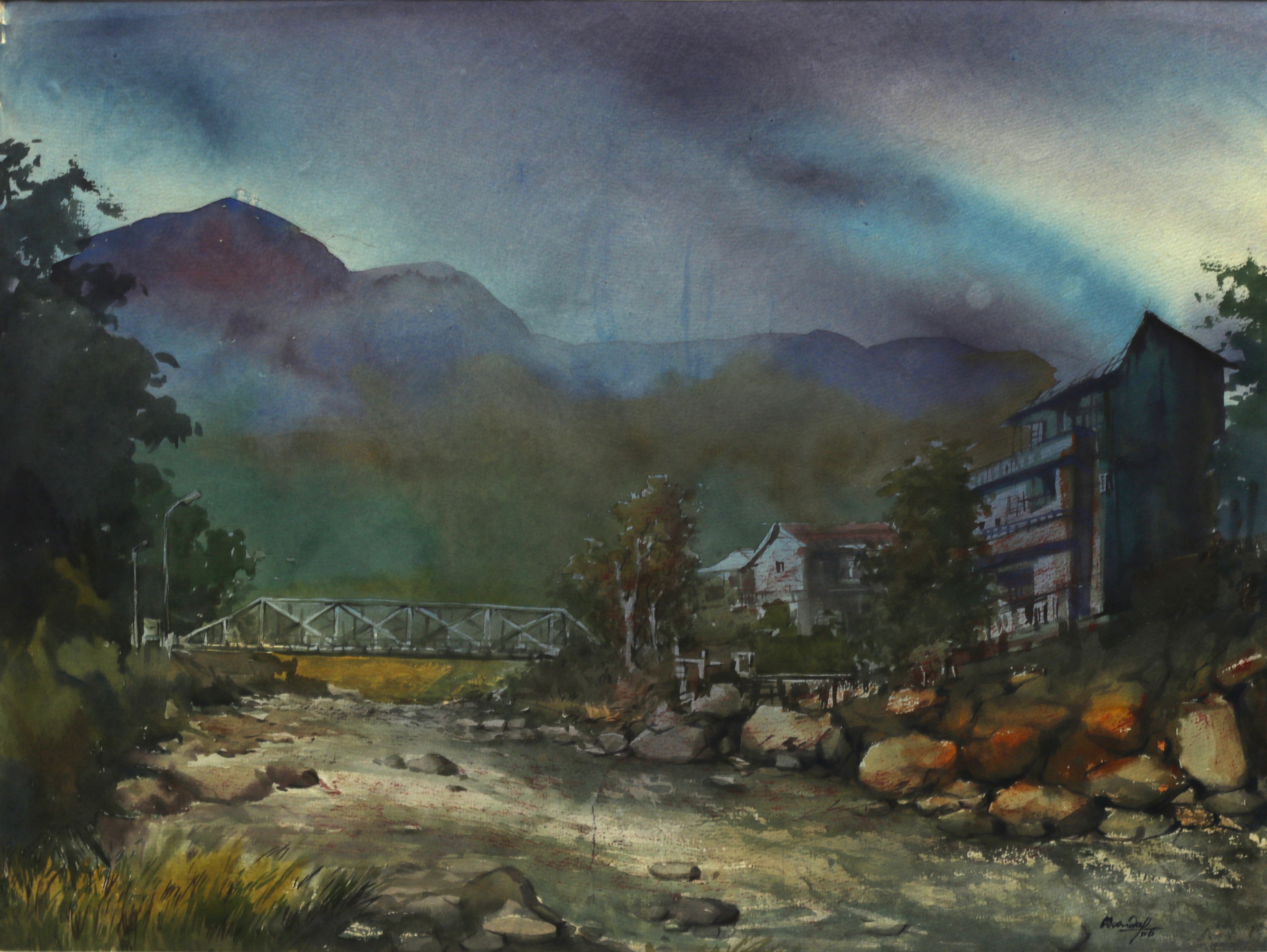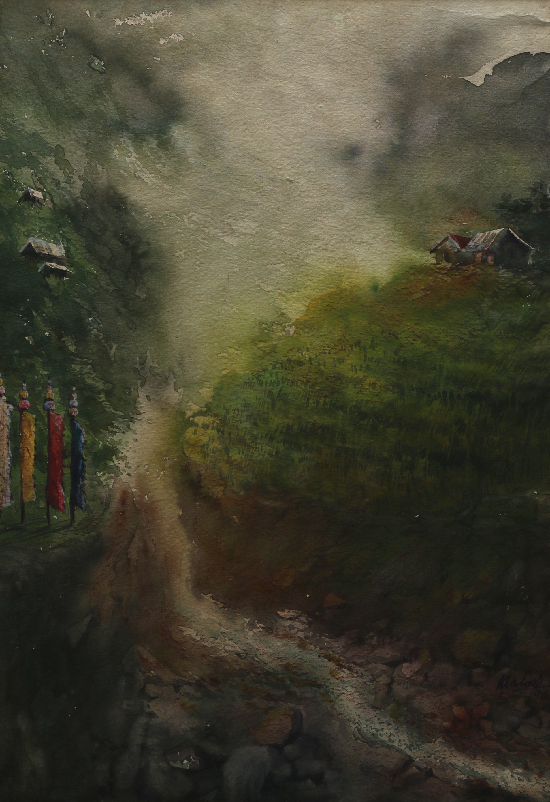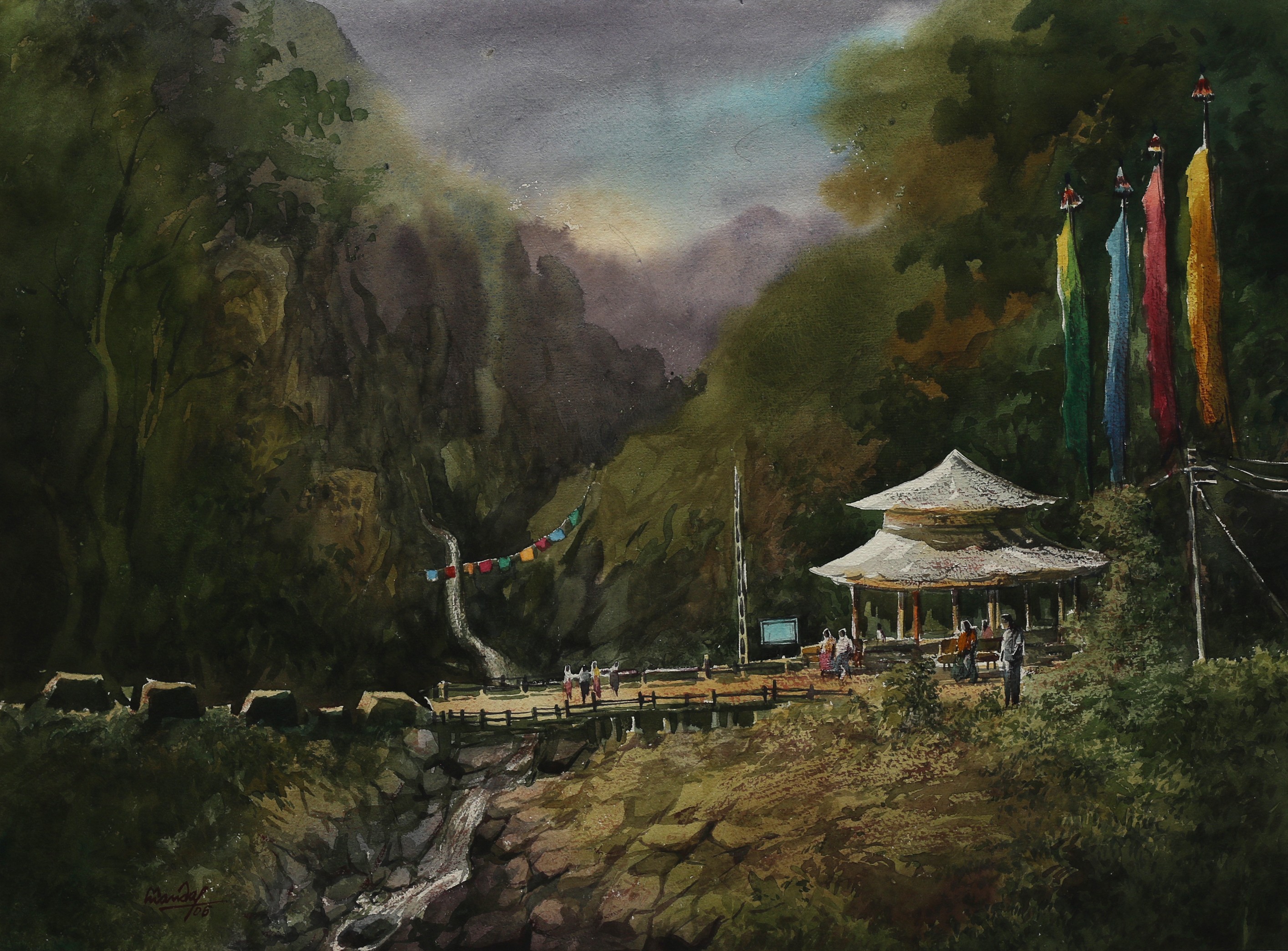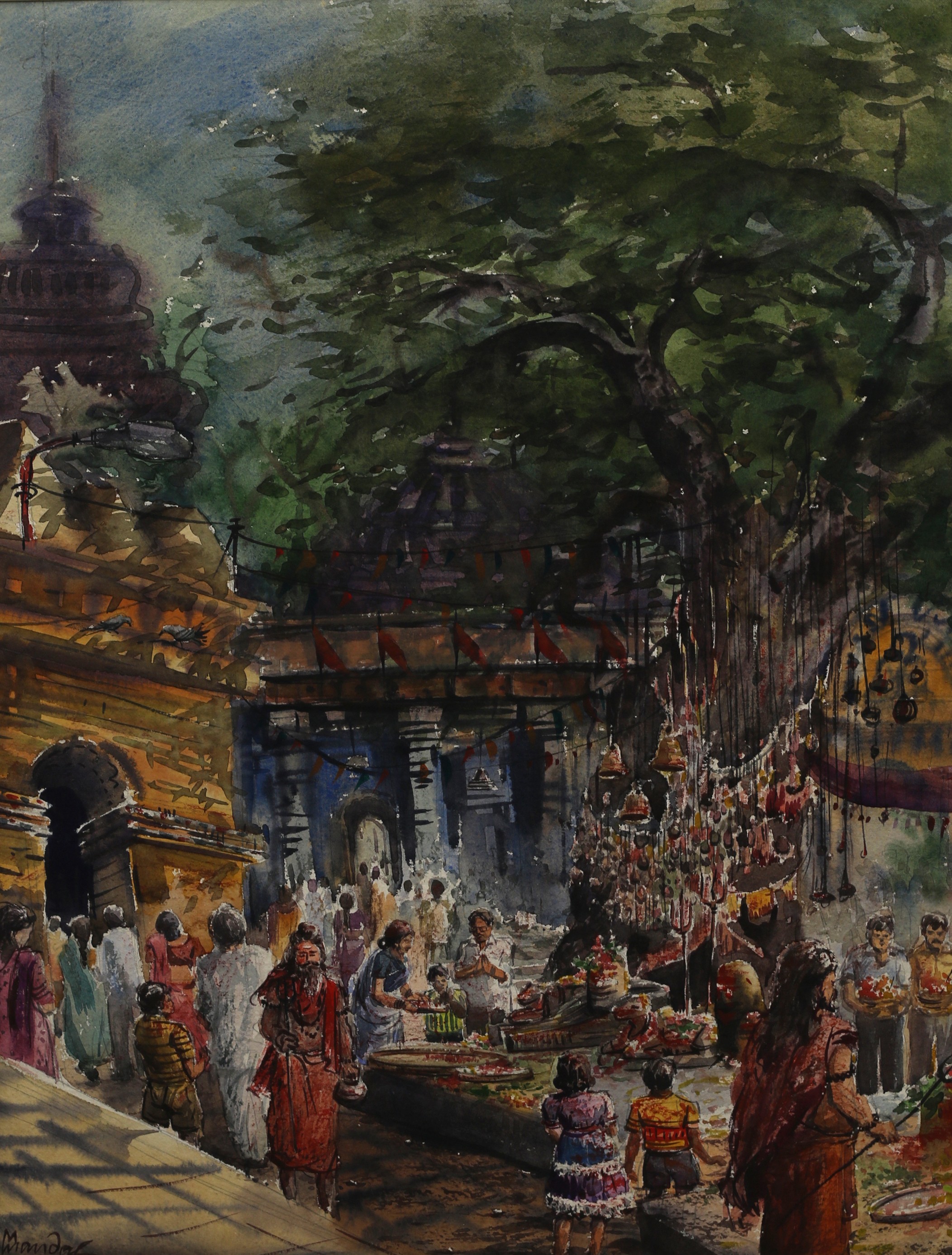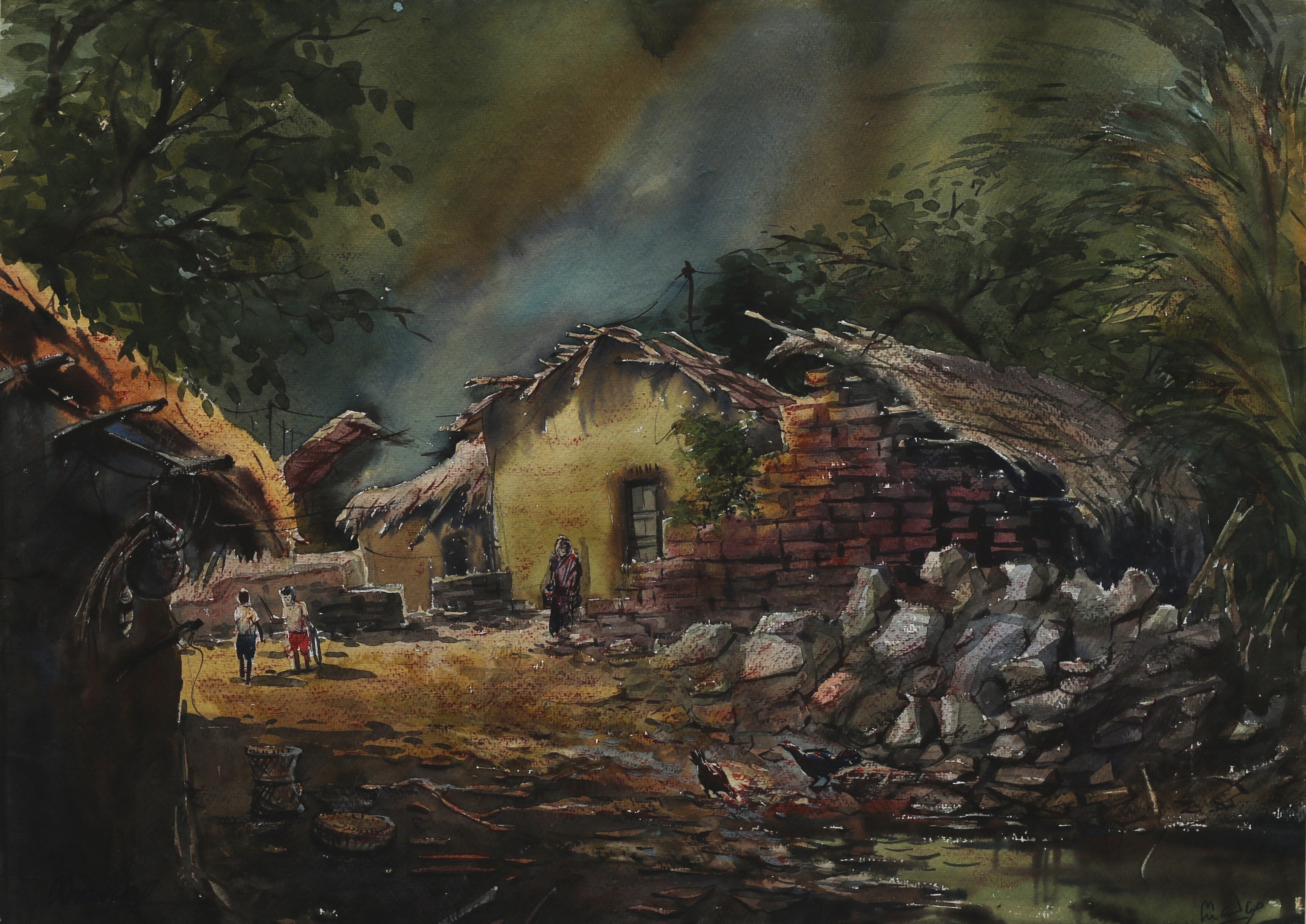 Mondal often paints in watercolour, freshness shown in his watercolour landscape paintings. Also painted the “Gangtok” series. His subjects are on day-today life of rural and urban areas. His compositions are calm and peaceful and soothing to the eyes.