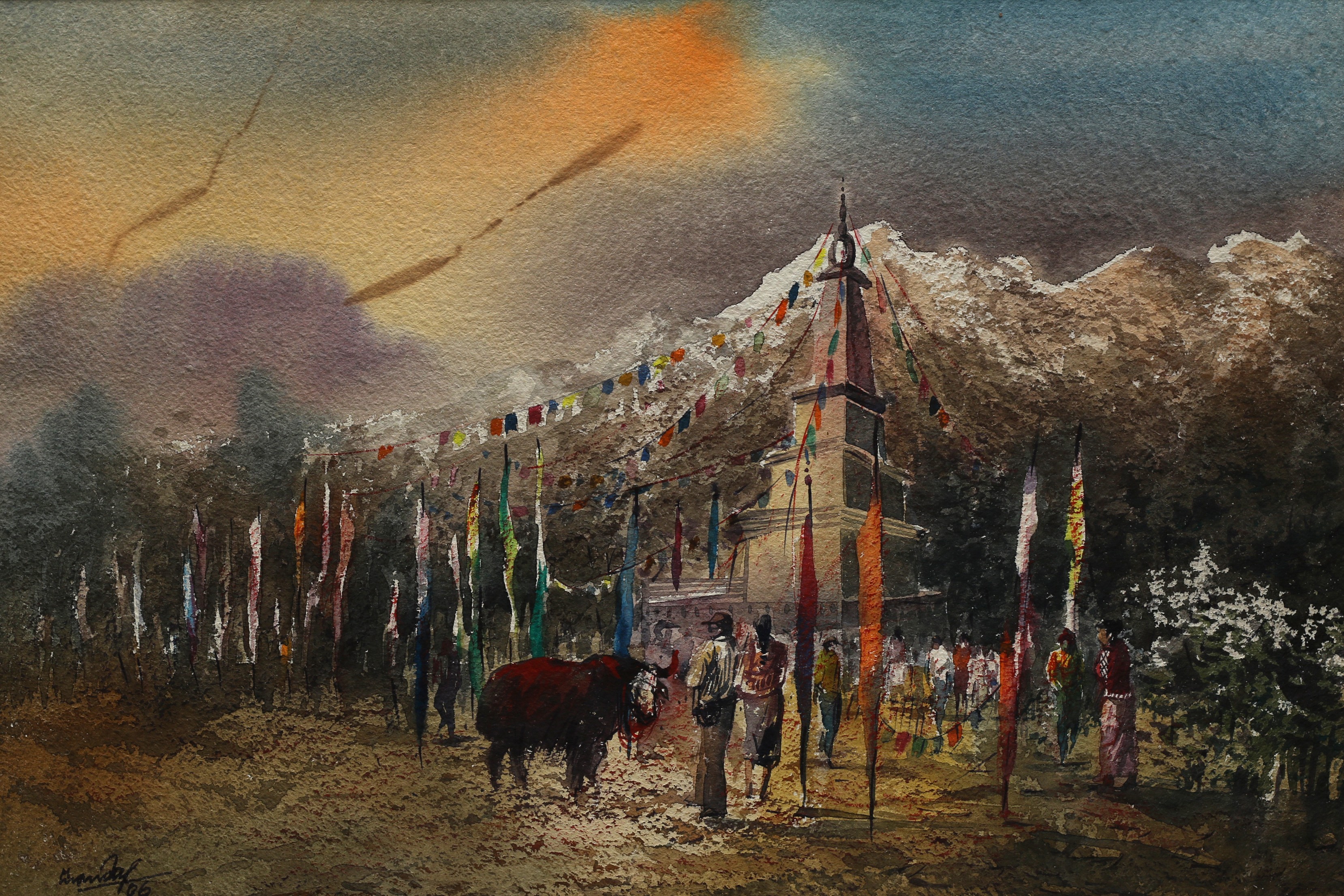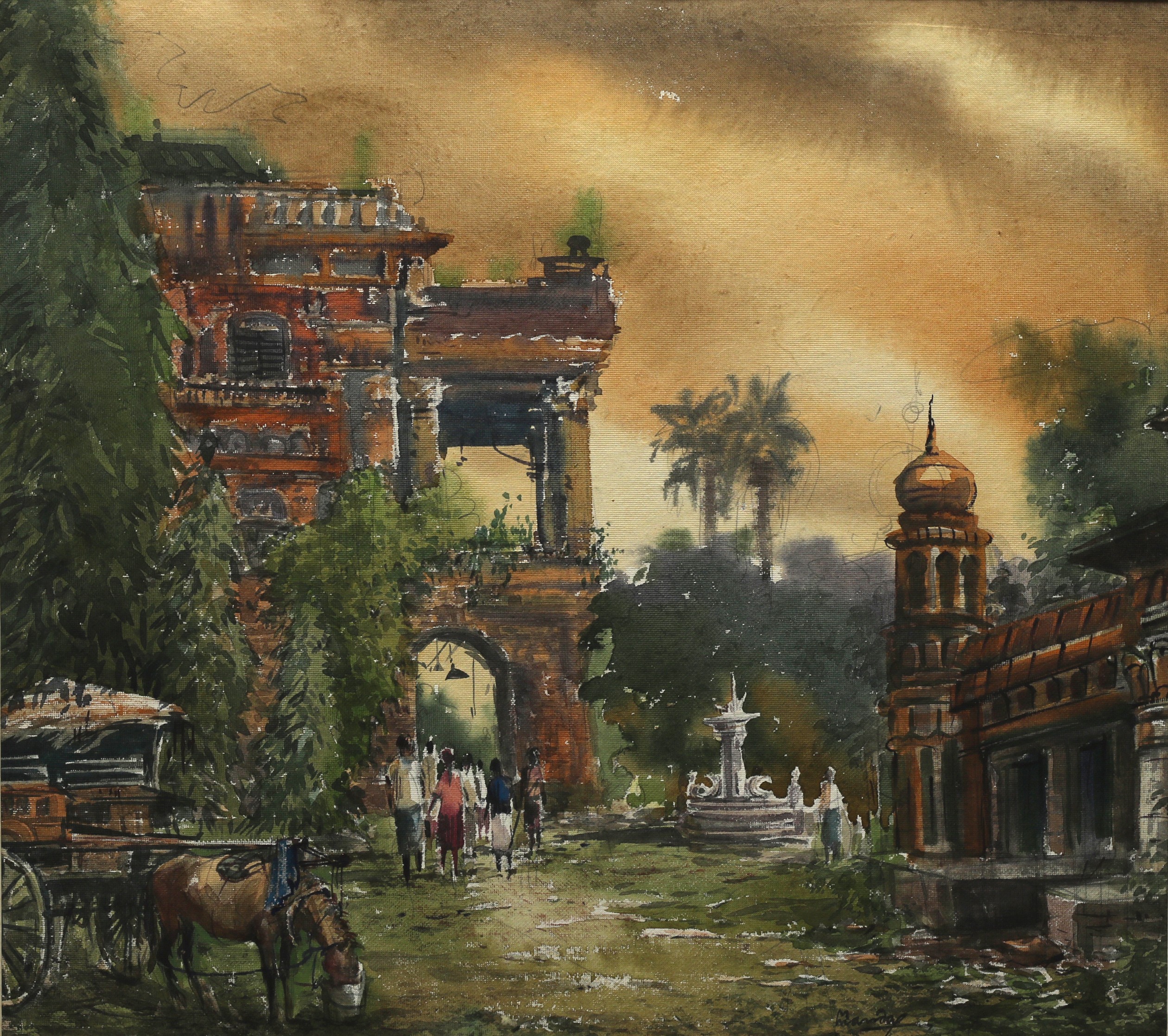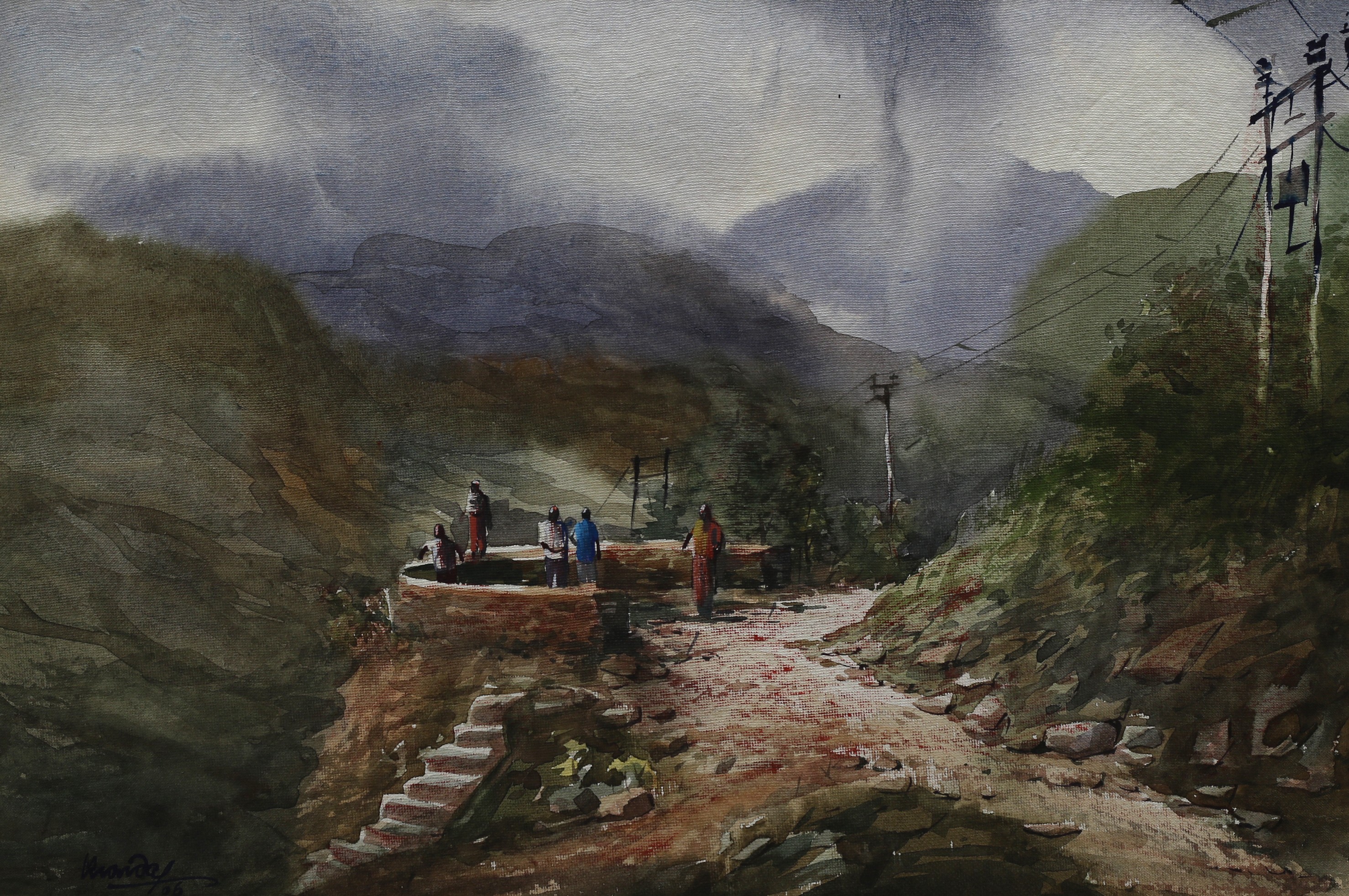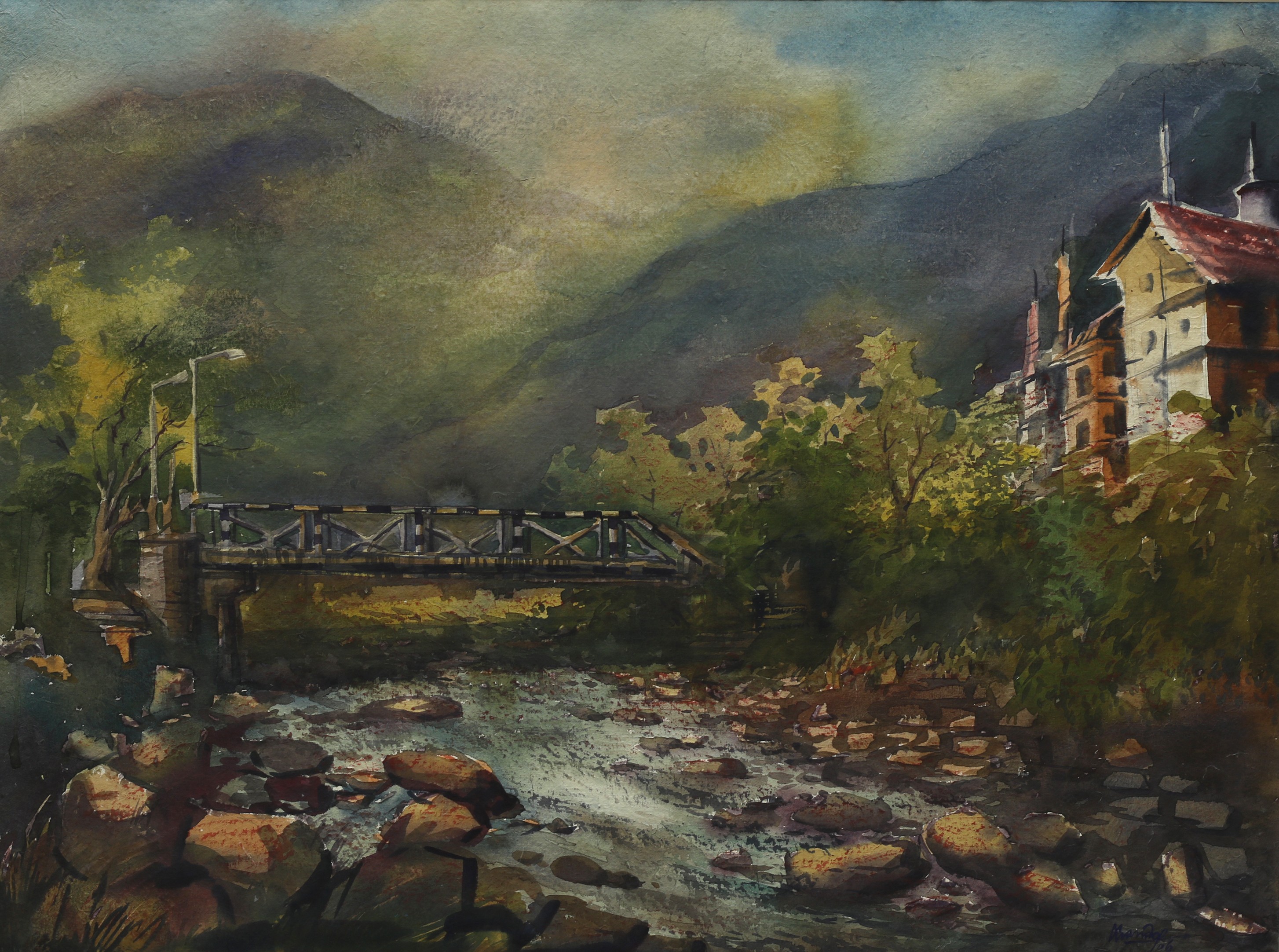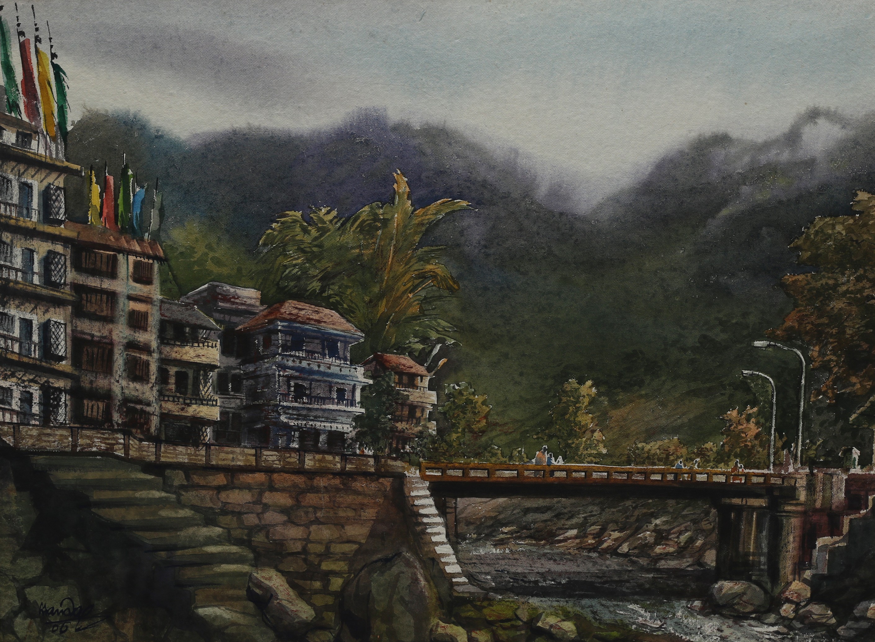 Mondal often paints in watercolour, freshness shown in his watercolour landscape paintings. Also painted the “Gangtok” series. His subjects are on day-today life of rural and urban areas. His compositions are calm and peaceful and soothing to the eyes.