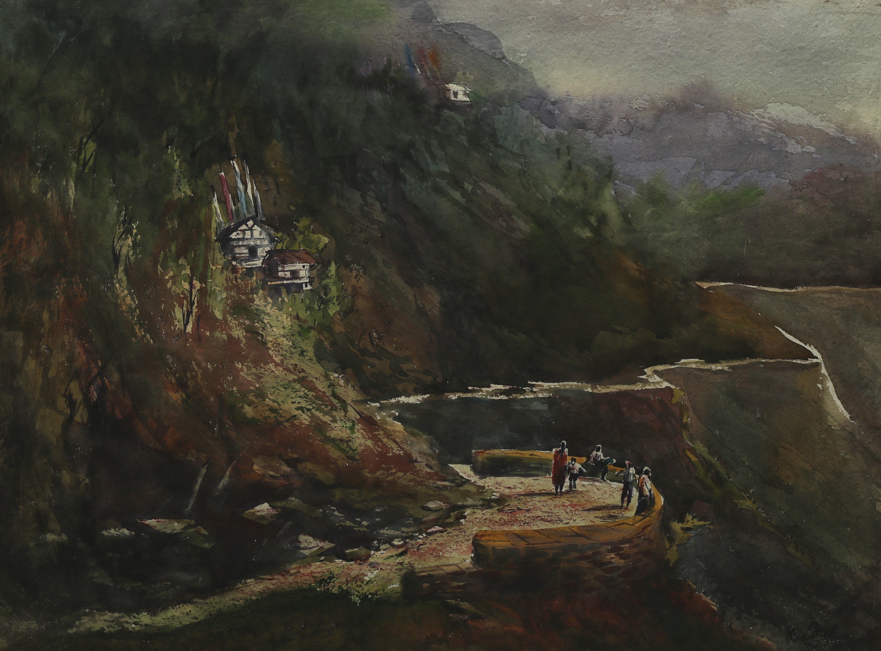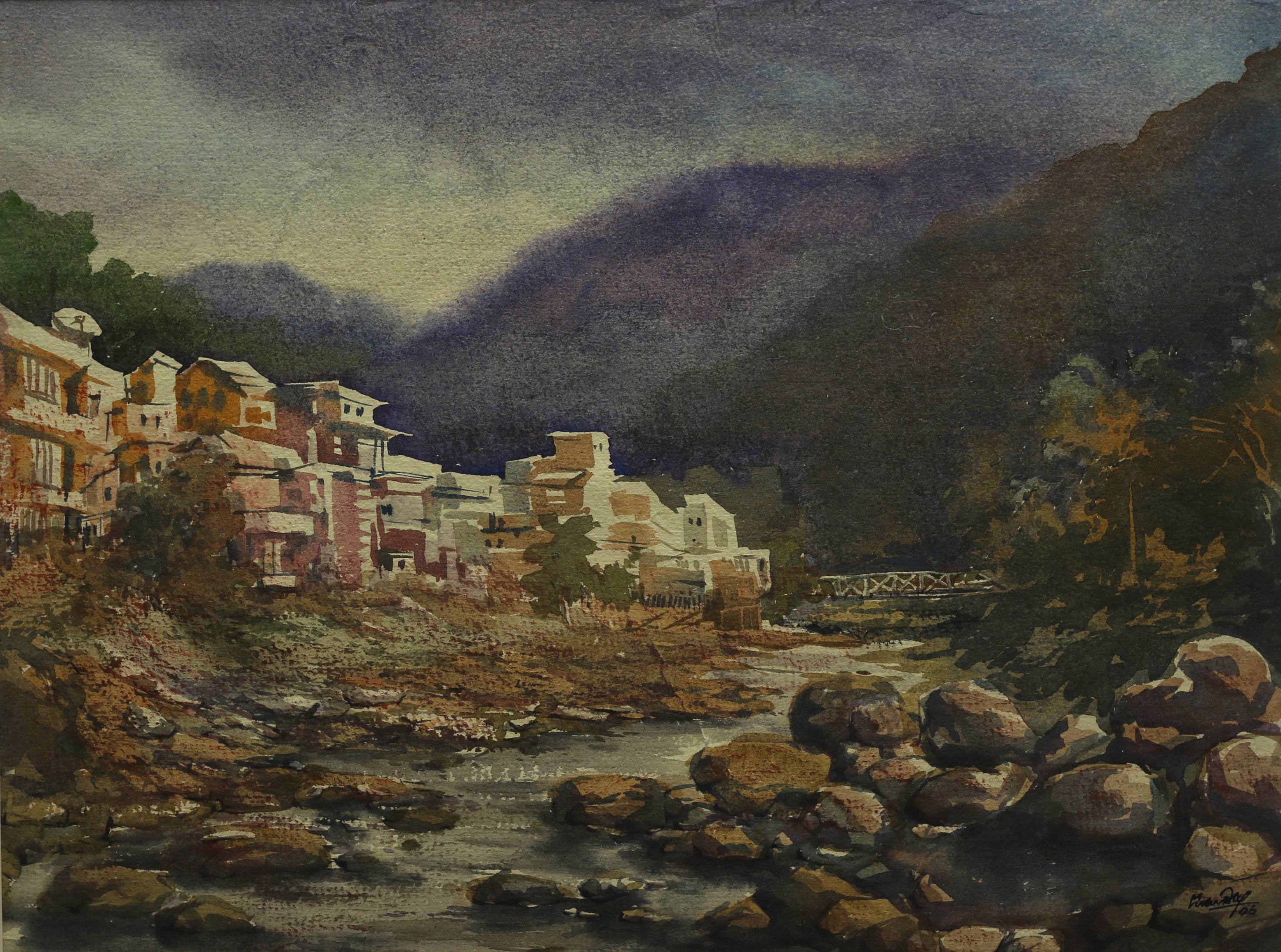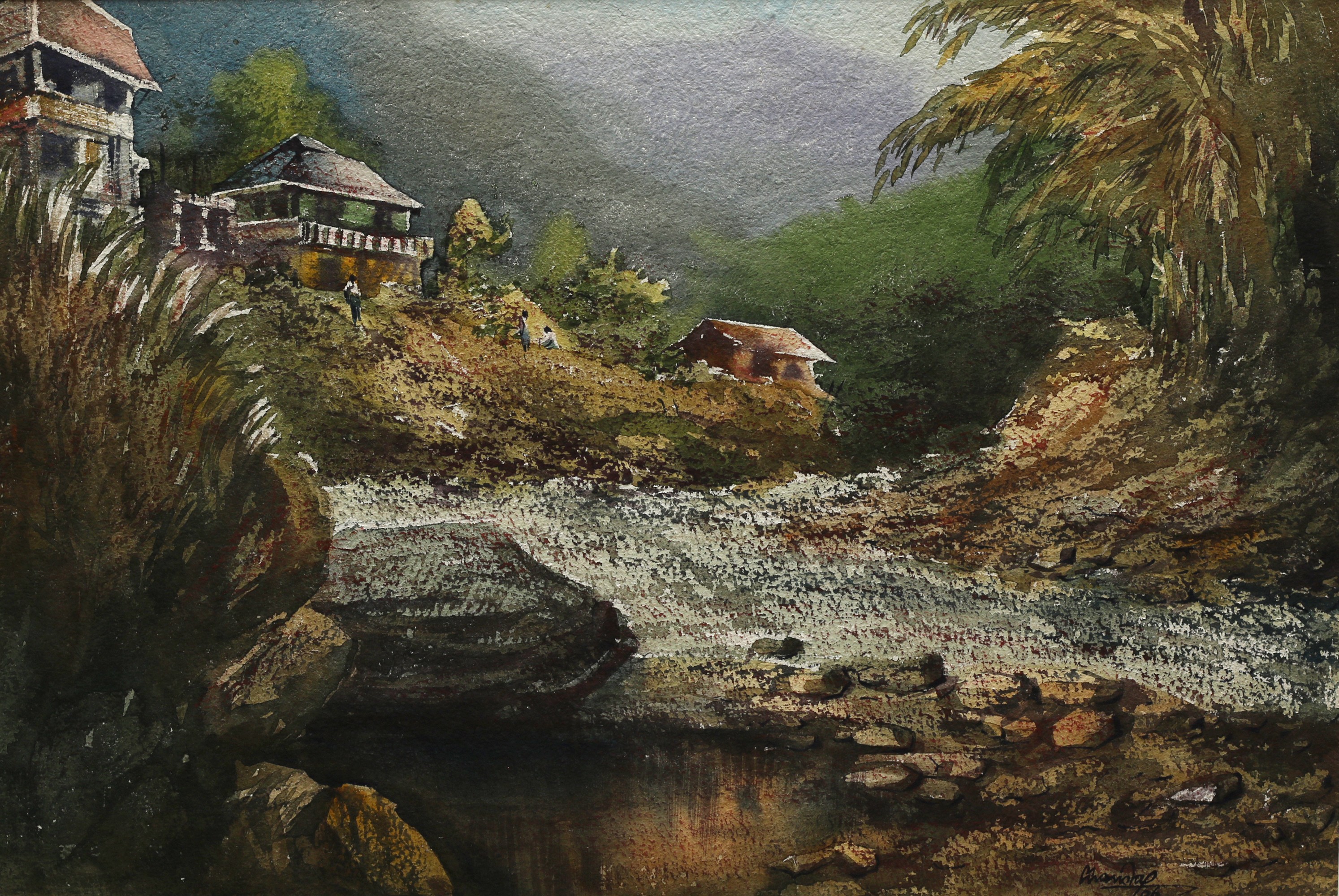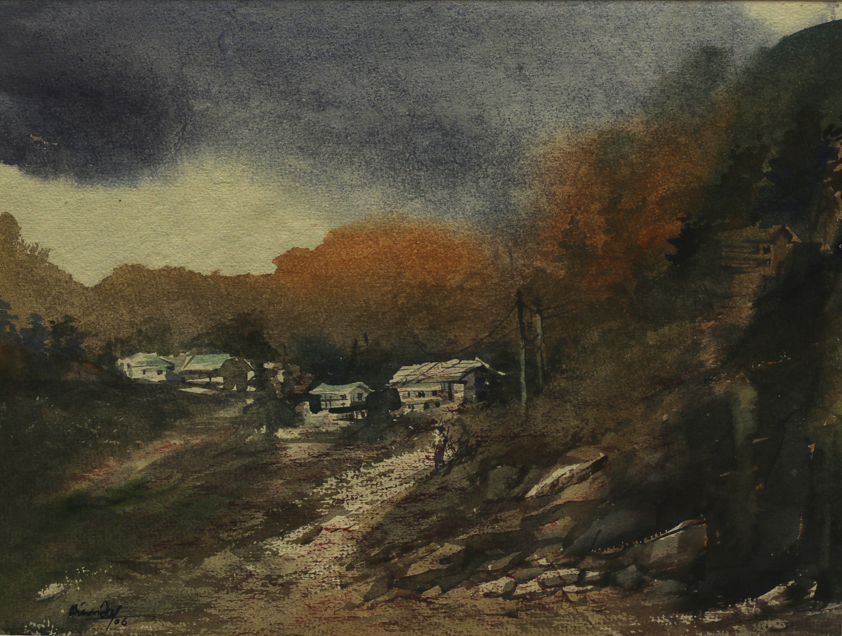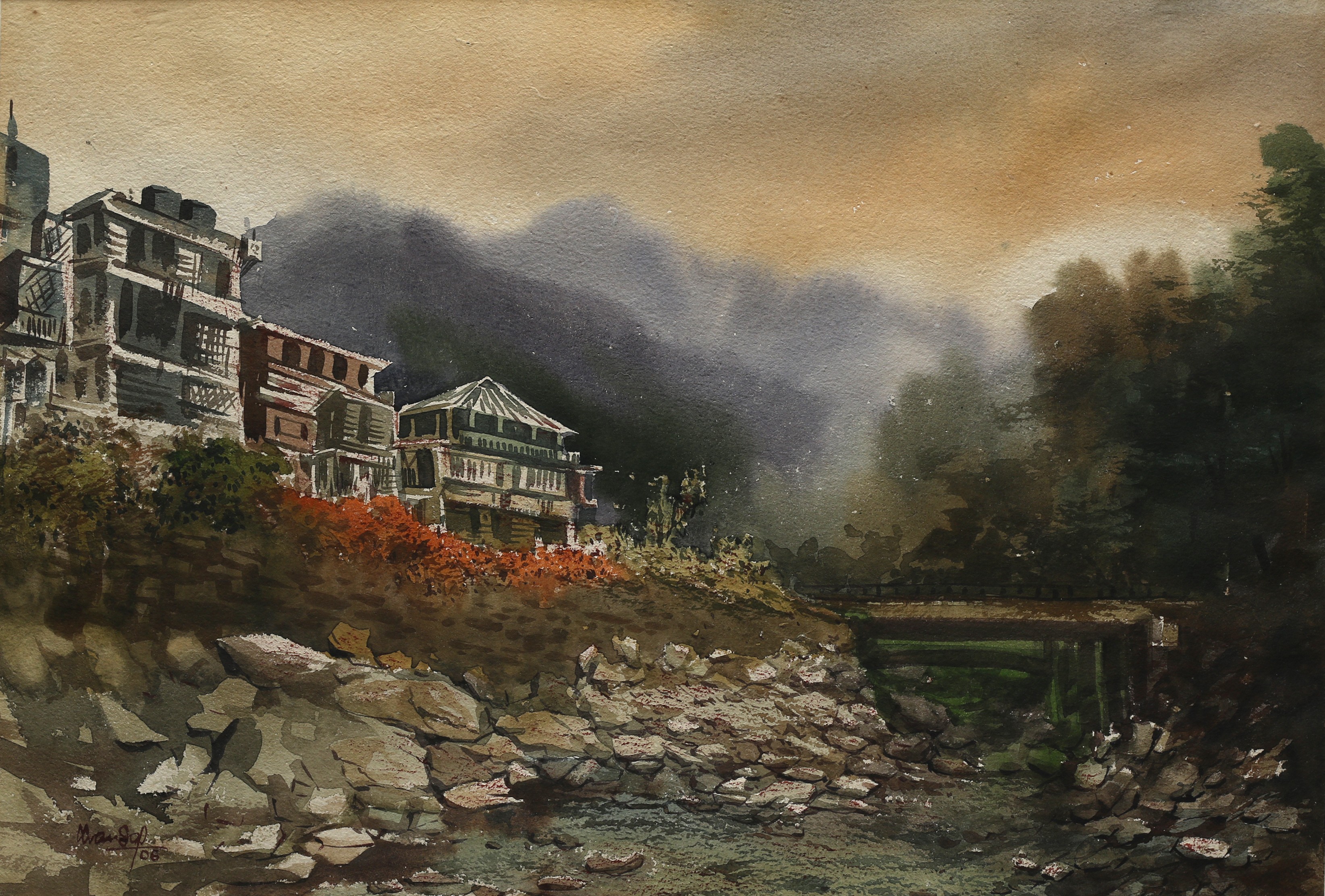 Mondal often paints in watercolour, freshness shown in his watercolour landscape paintings. Also painted the “Gangtok” series. His subjects are on day-today life of rural and urban areas. His compositions are calm and peaceful and soothing to the eyes.