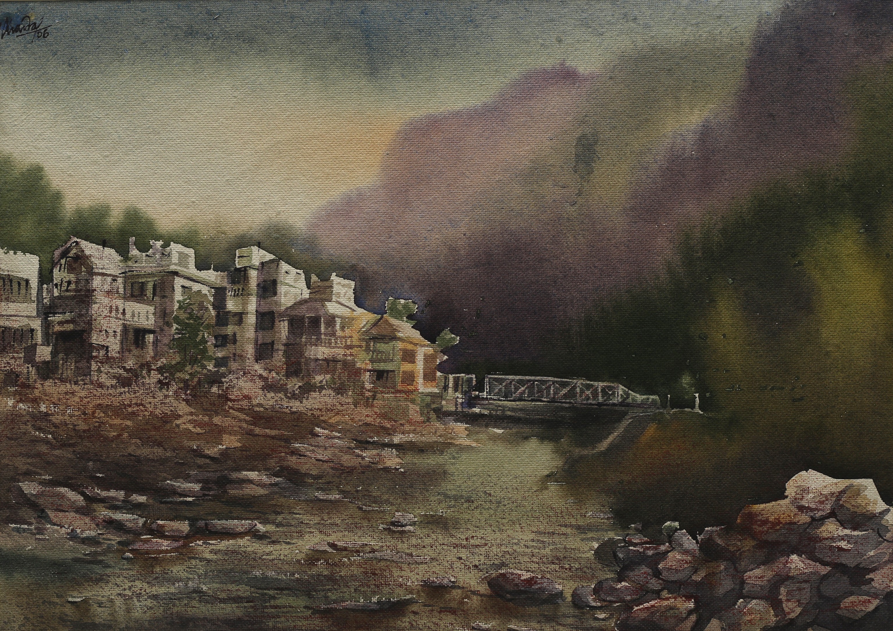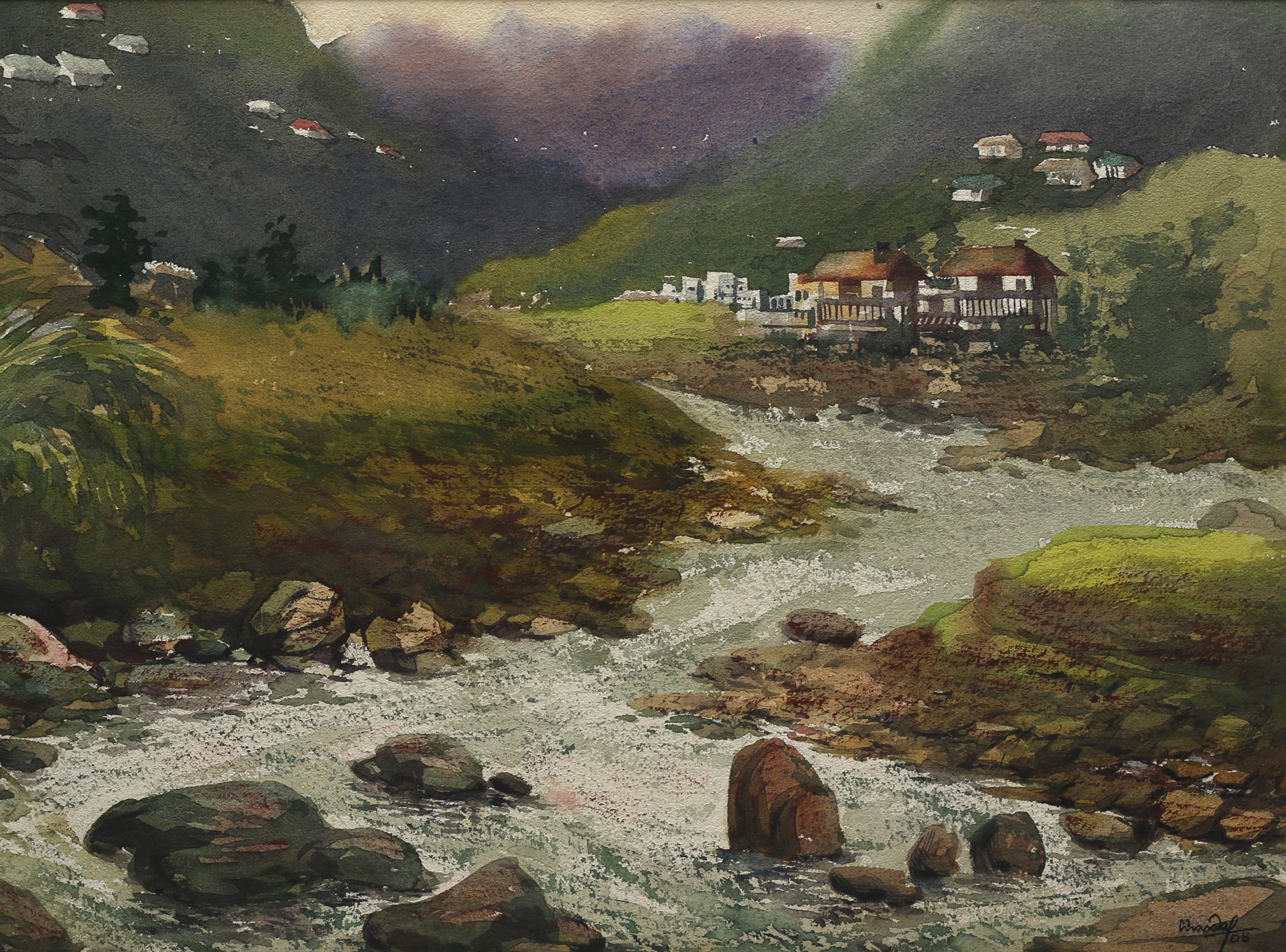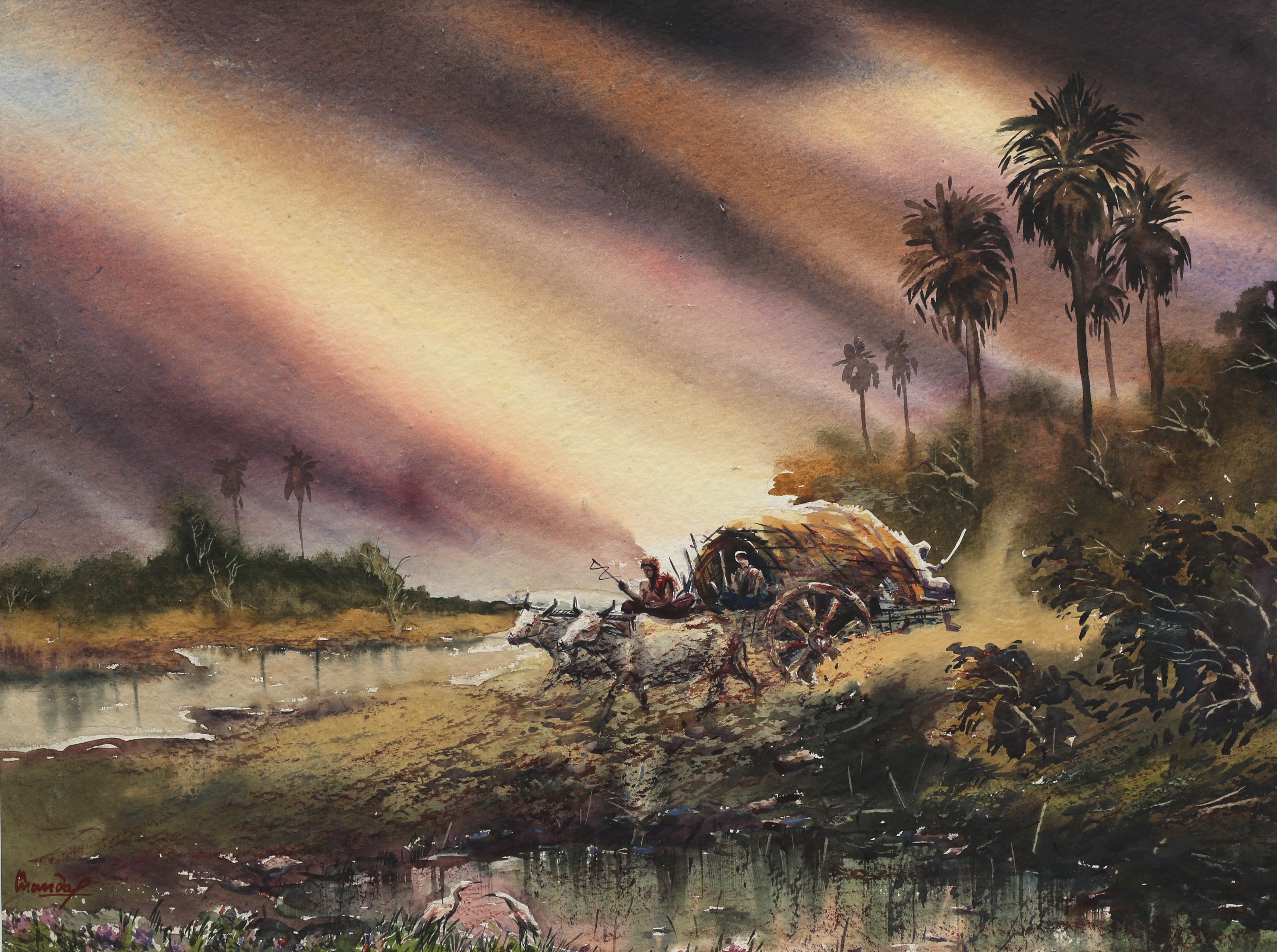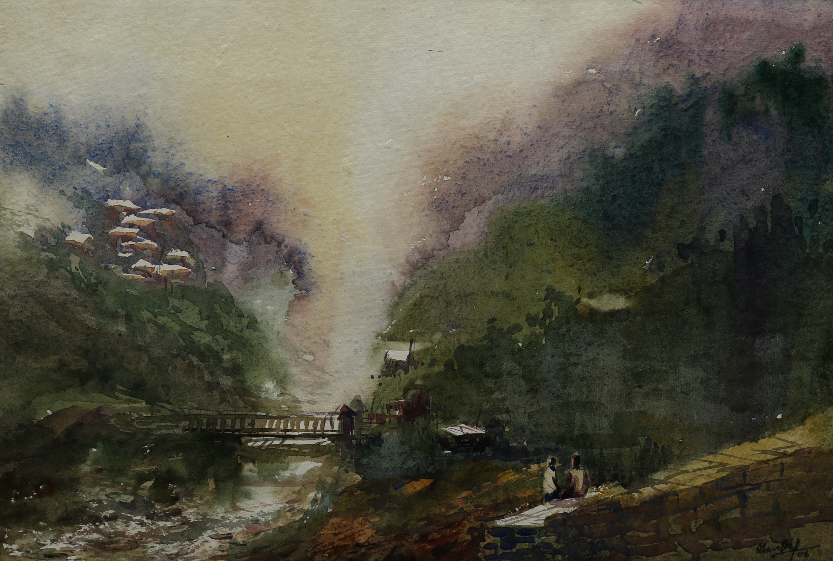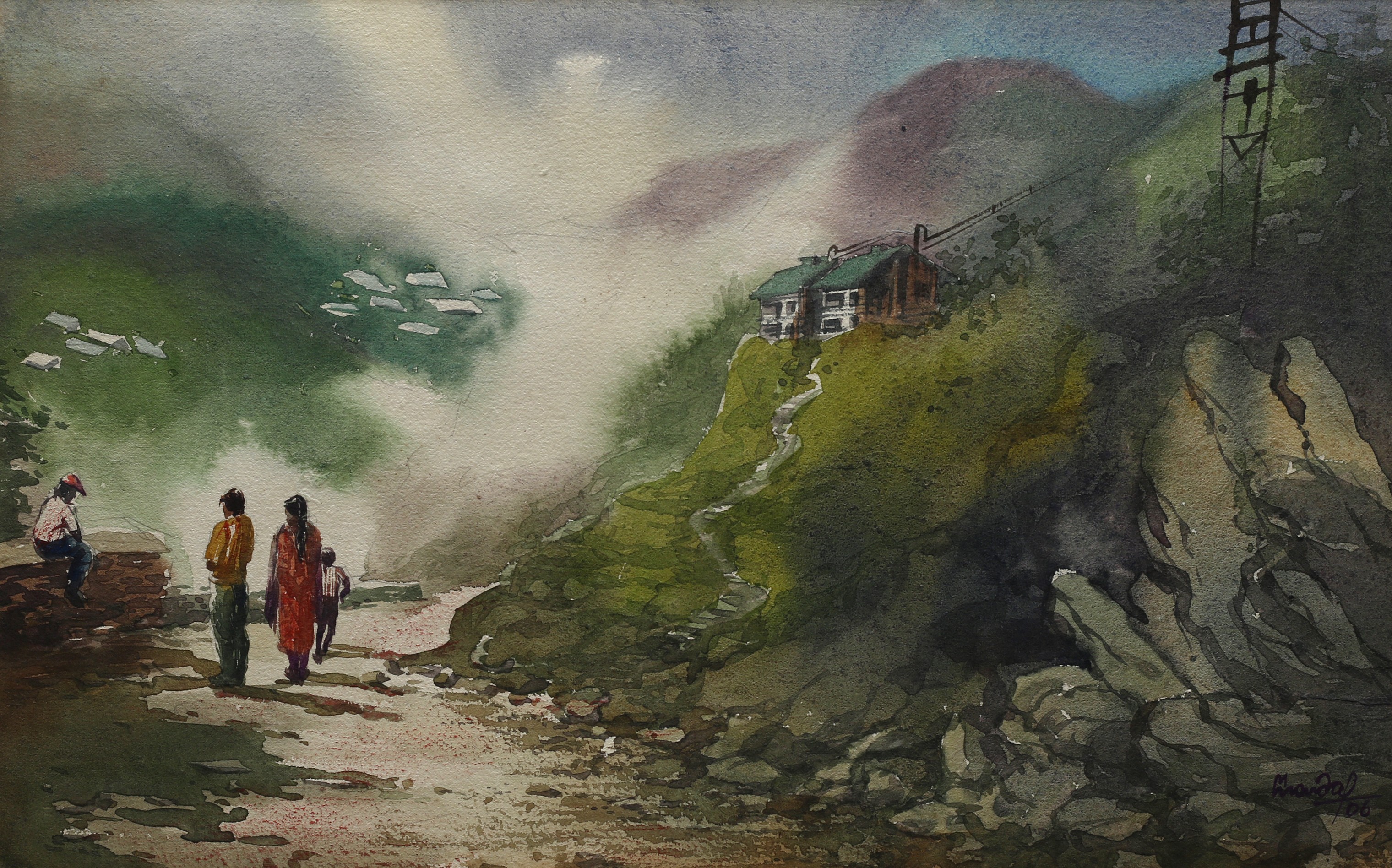Mondal often paints in watercolour, freshness shown in his watercolour landscape paintings. Also painted the “Gangtok” series. His subjects are on day-today life of rural and urban areas. His compositions are calm and peaceful and soothing to the eyes.