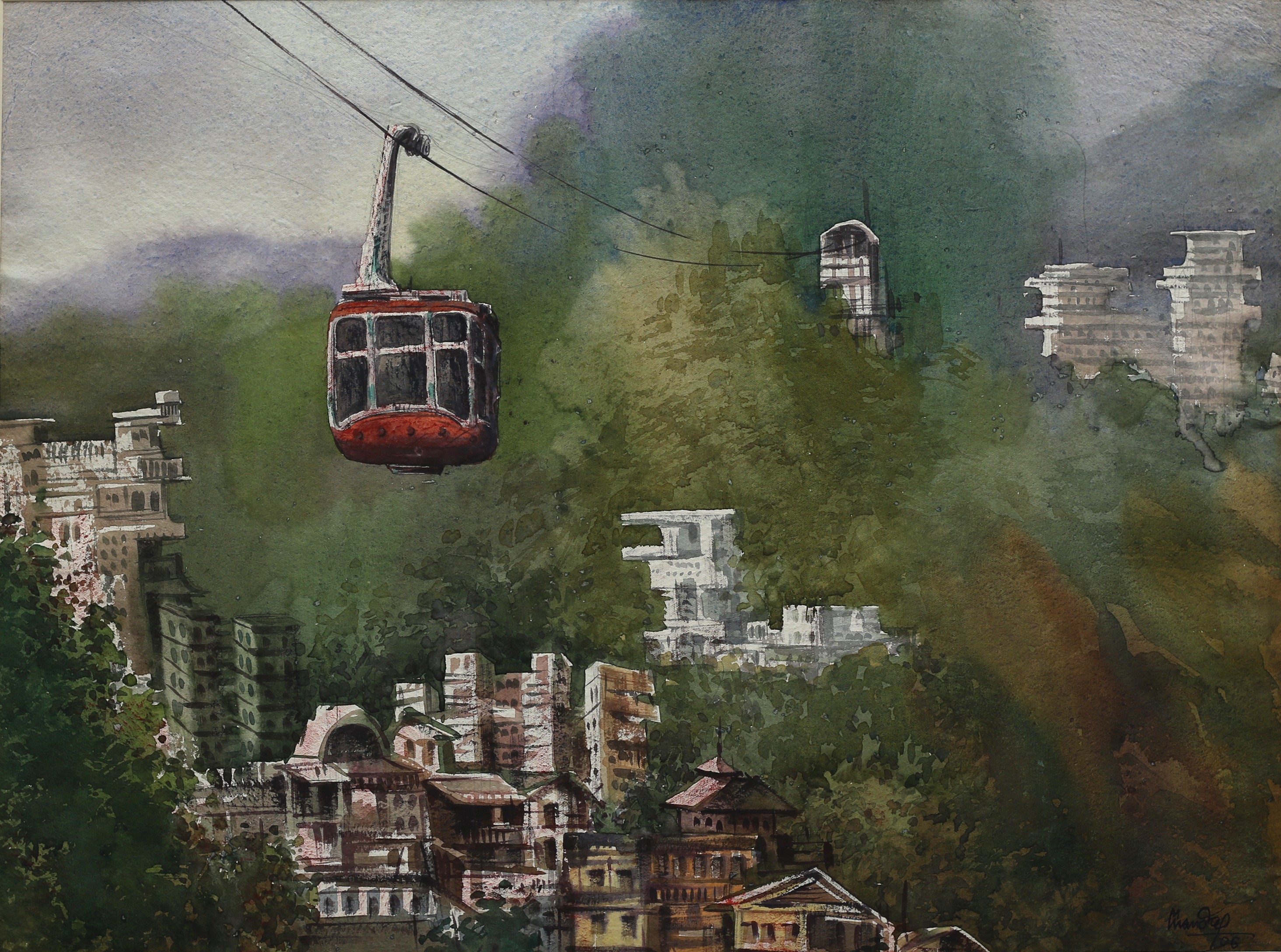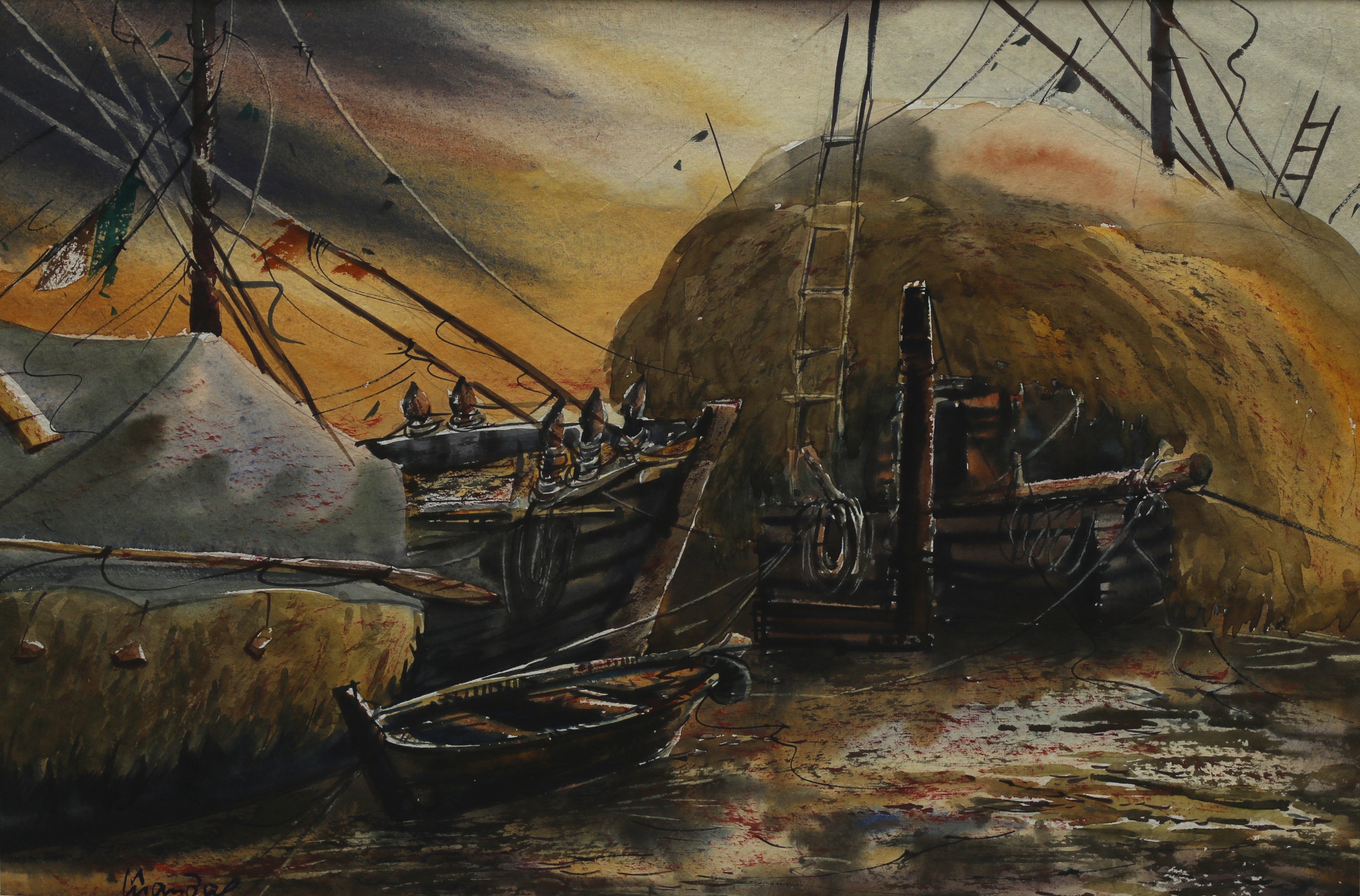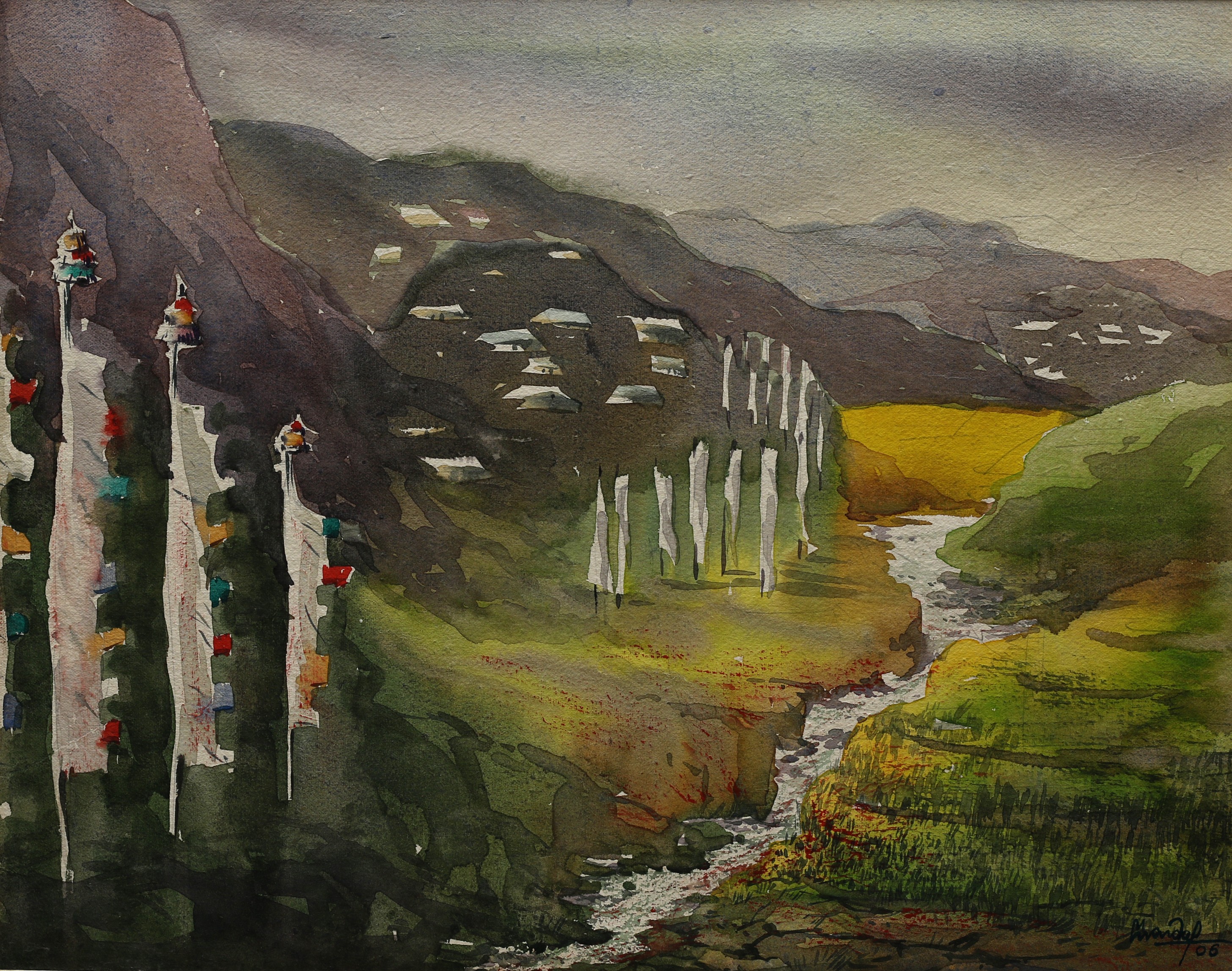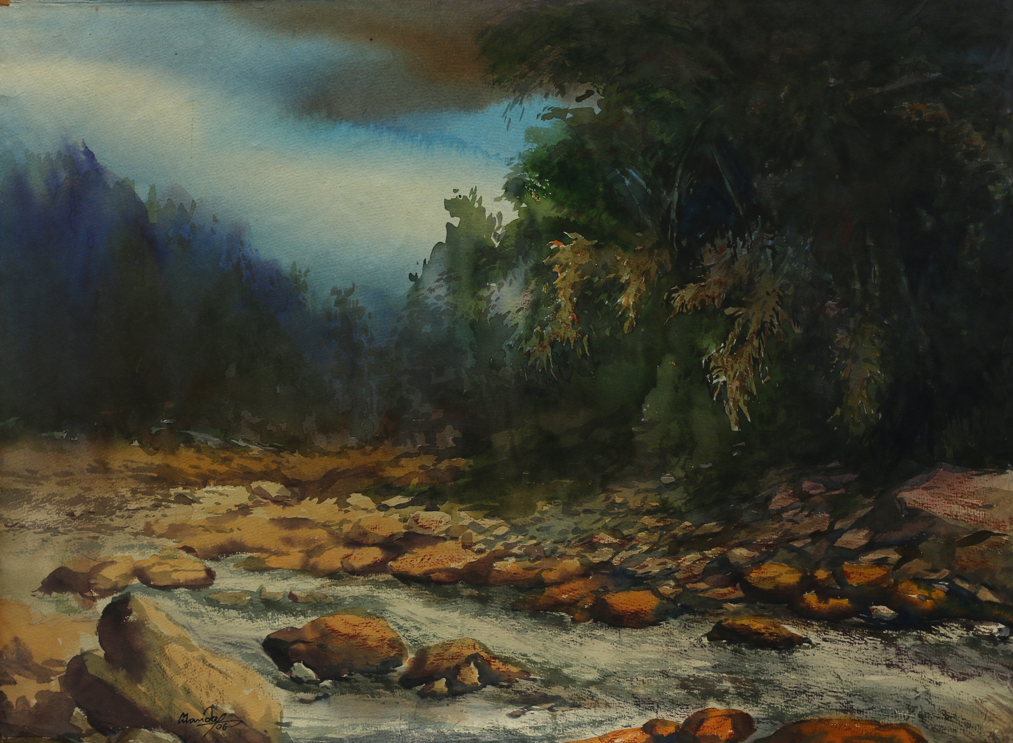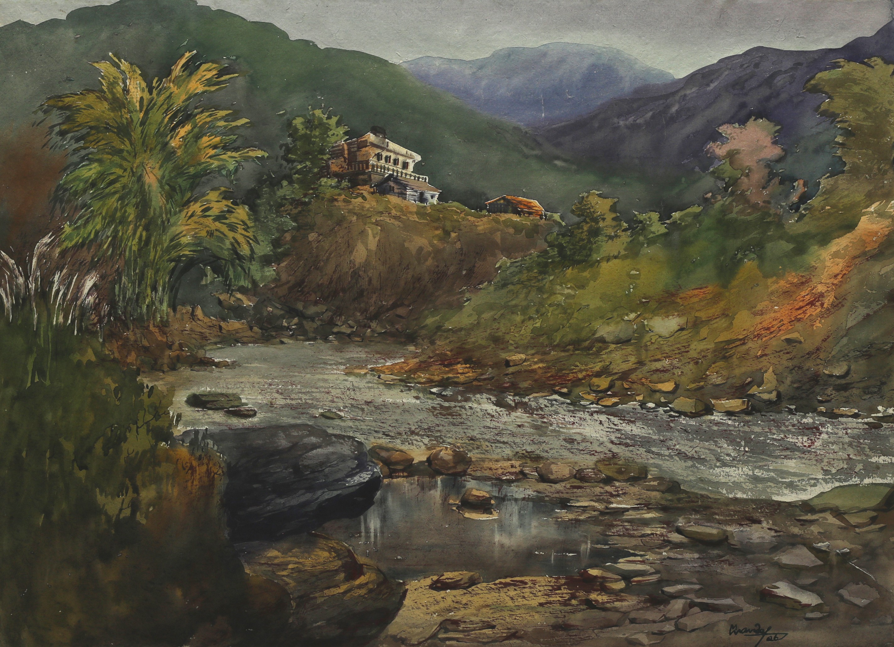 Mondal often paints in watercolour, freshness shown in his watercolour landscape paintings. Also painted the “Gangtok” series. His subjects are on day-today life of rural and urban areas. His compositions are calm and peaceful and soothing to the eyes.