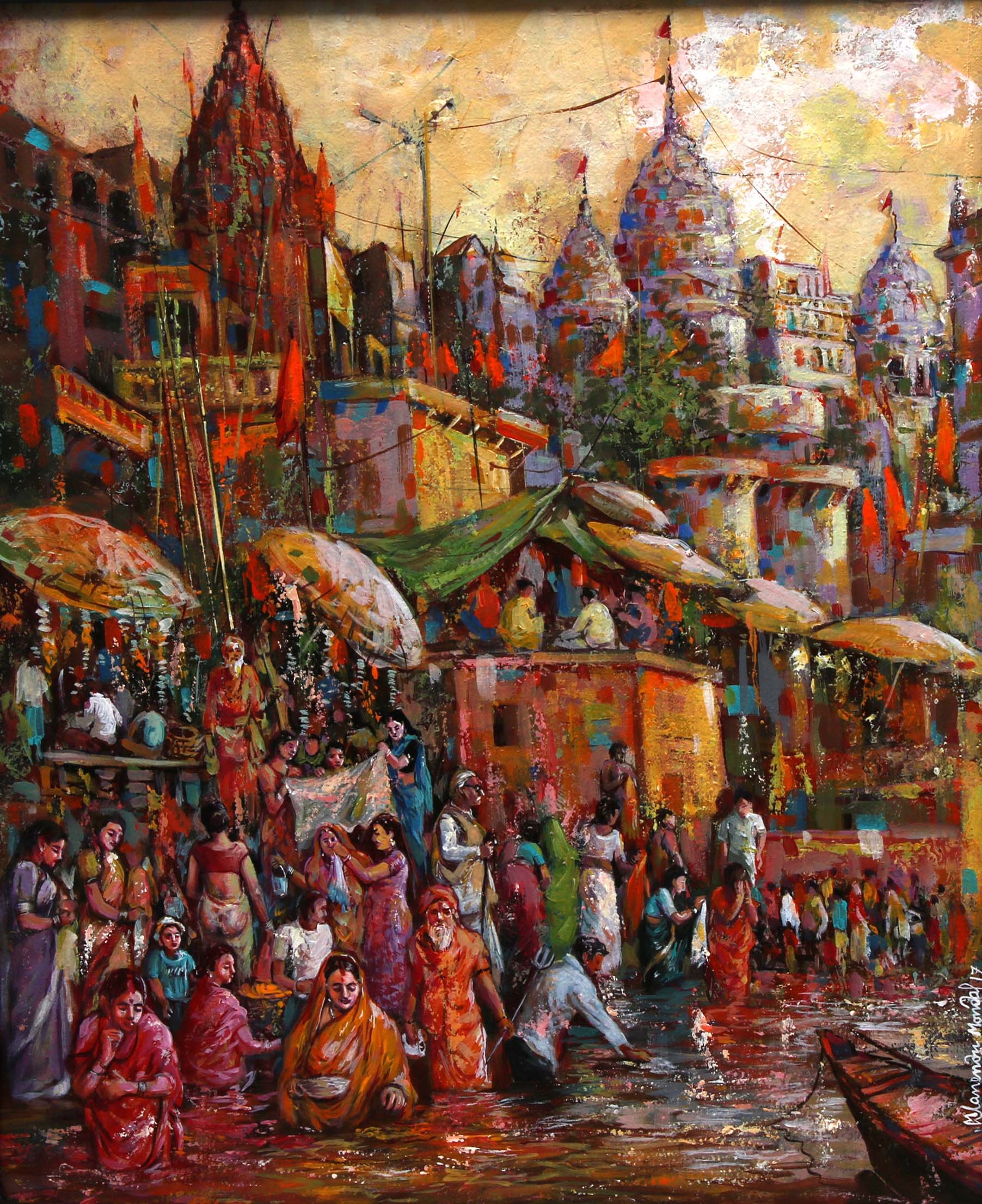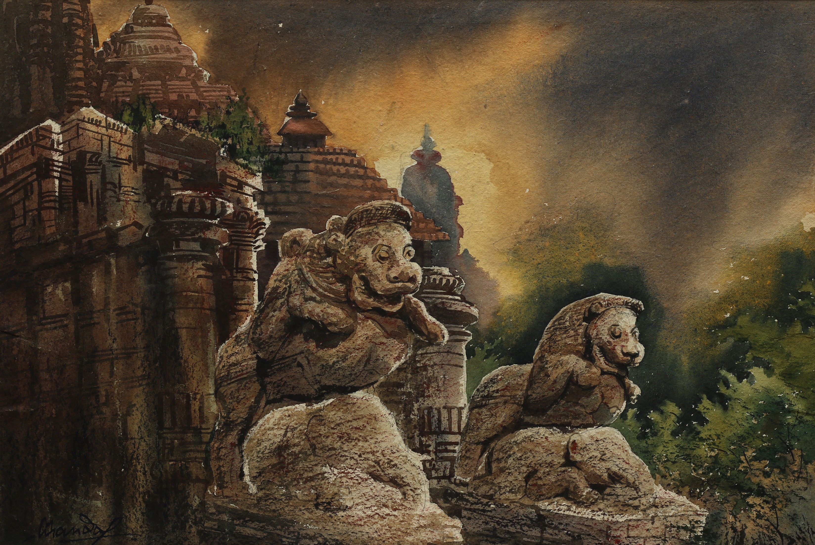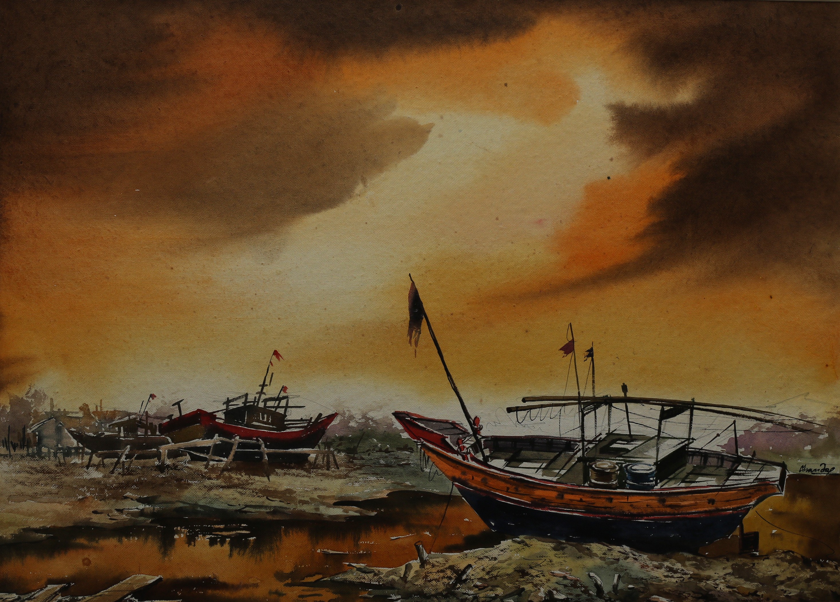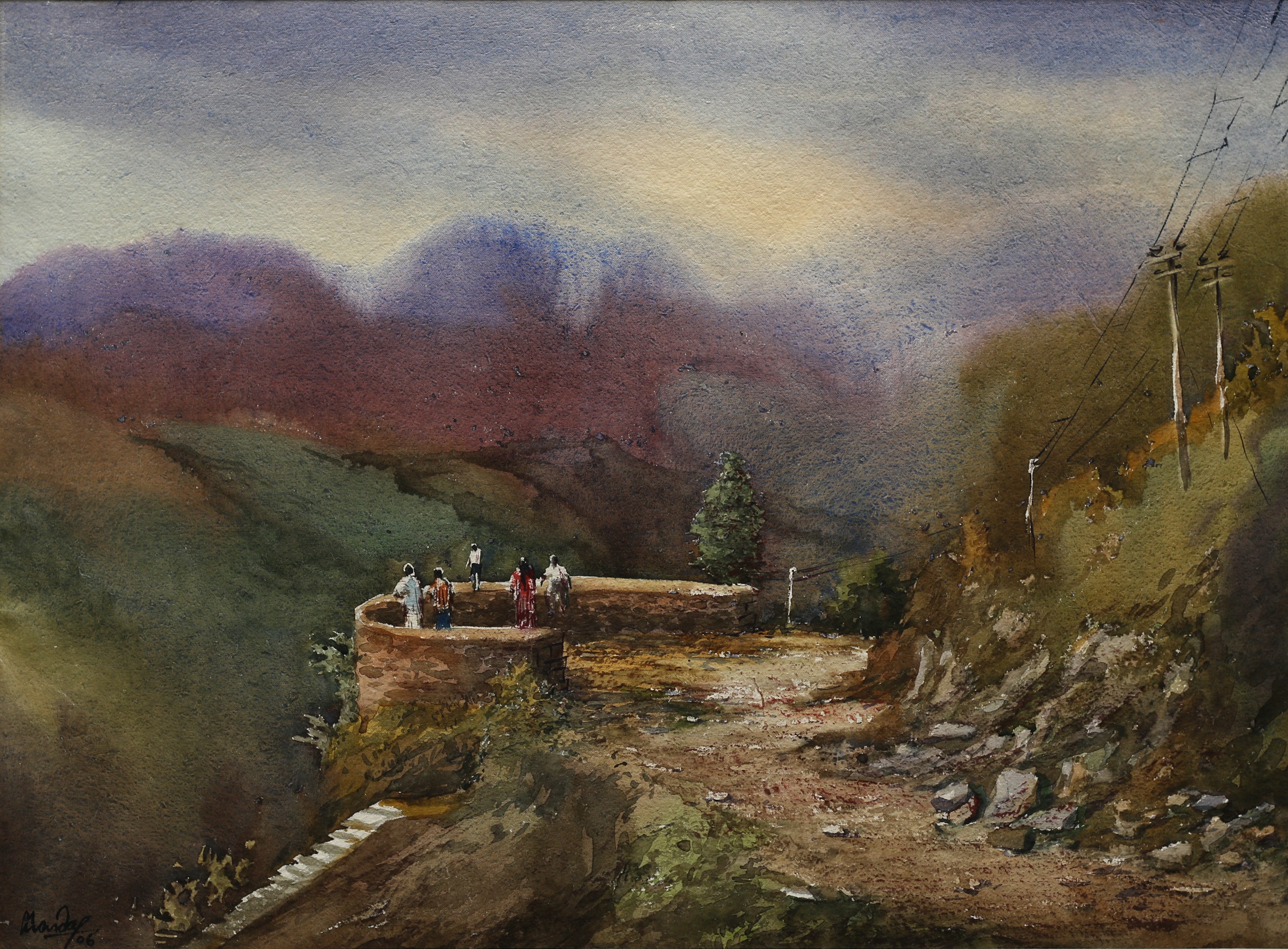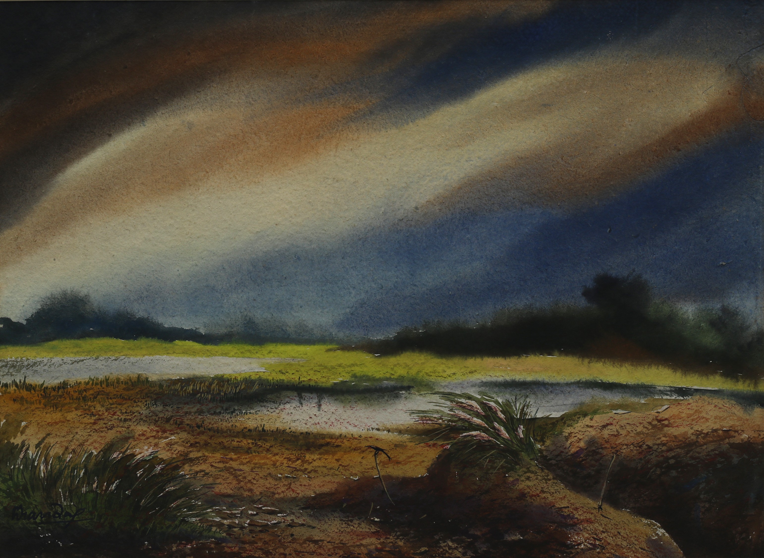 Mondal often paints in watercolour, freshness shown in his watercolour landscape paintings. Also painted the “Gangtok” series. His subjects are on day-today life of rural and urban areas. His compositions are calm and peaceful and soothing to the eyes.