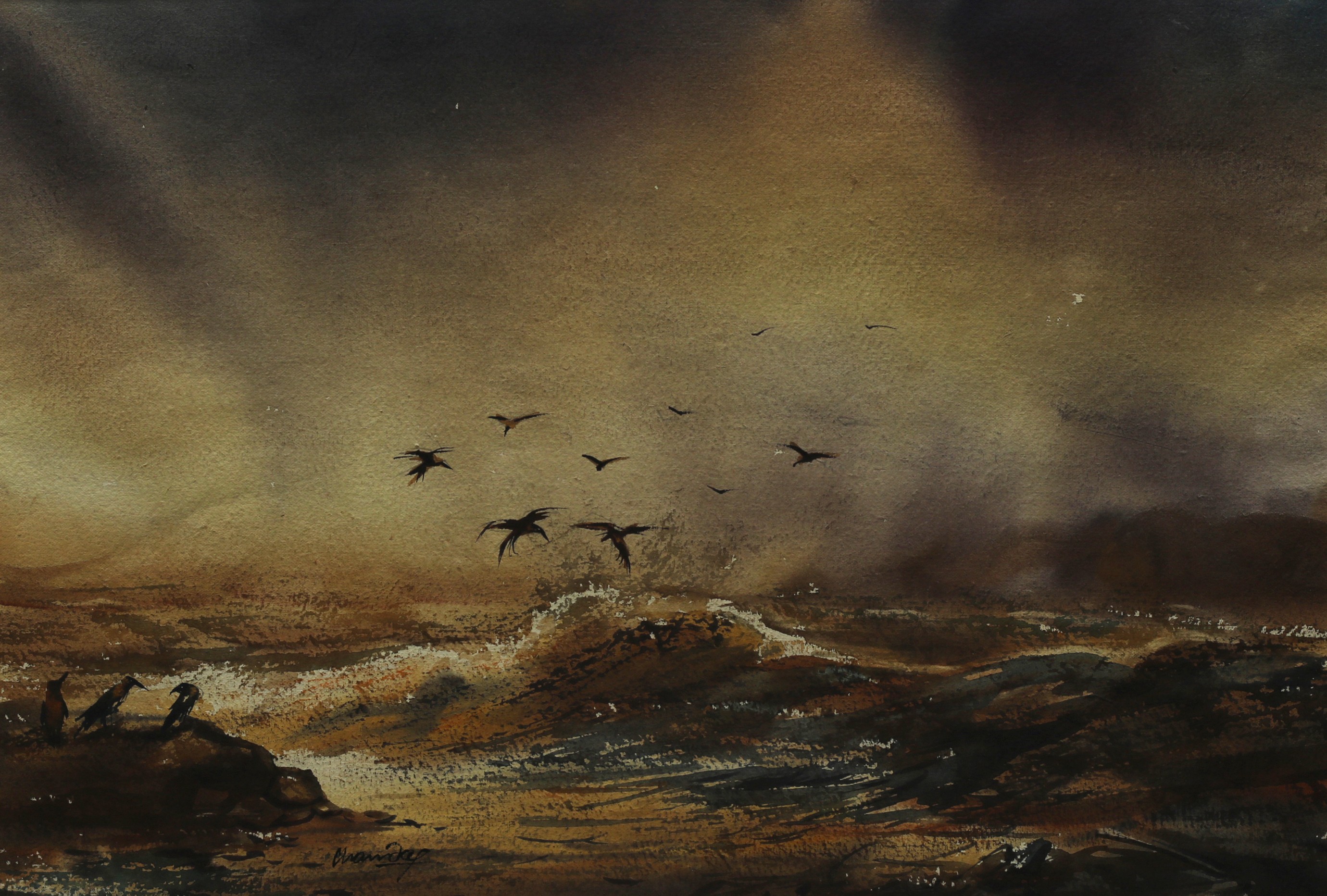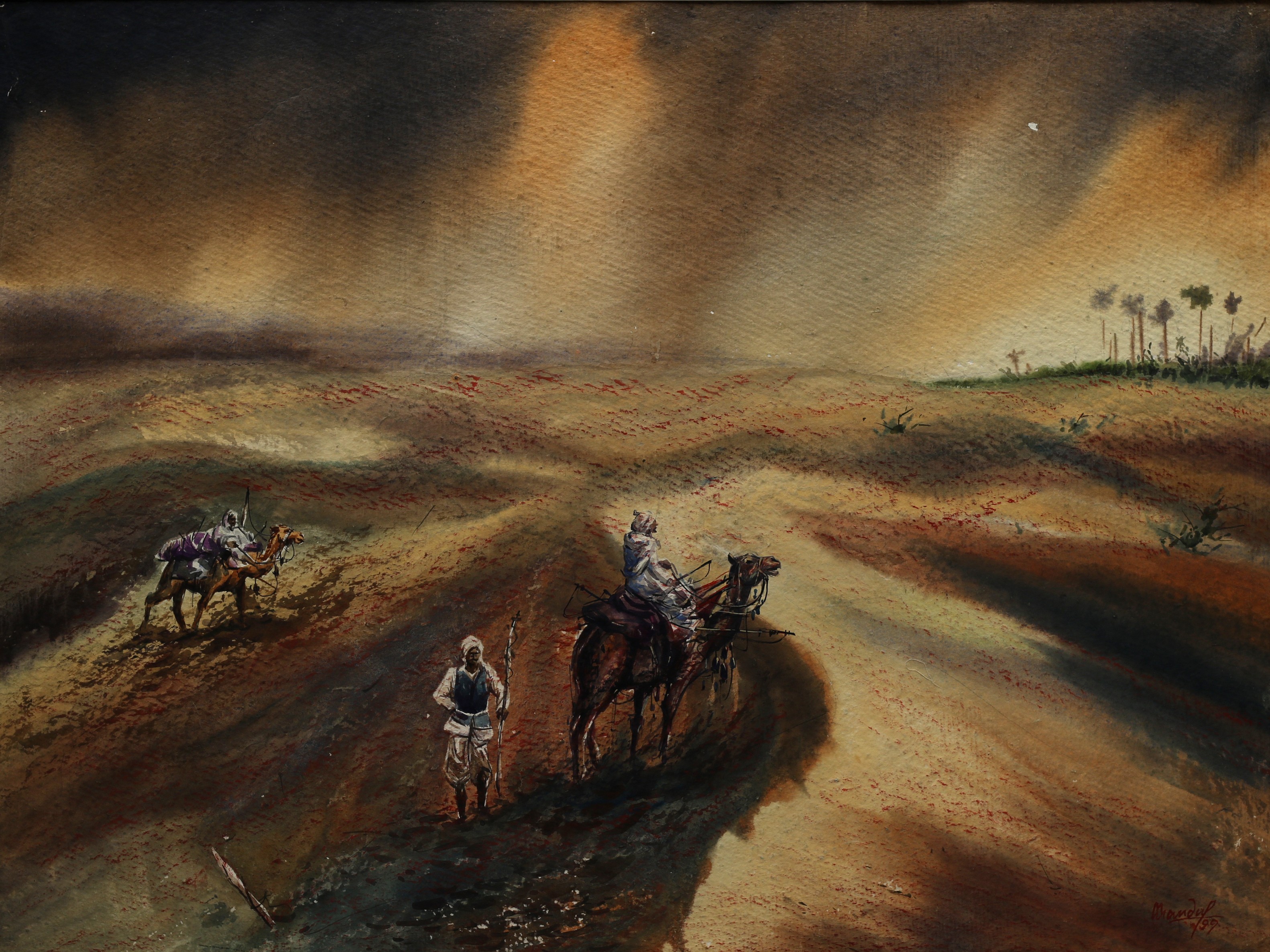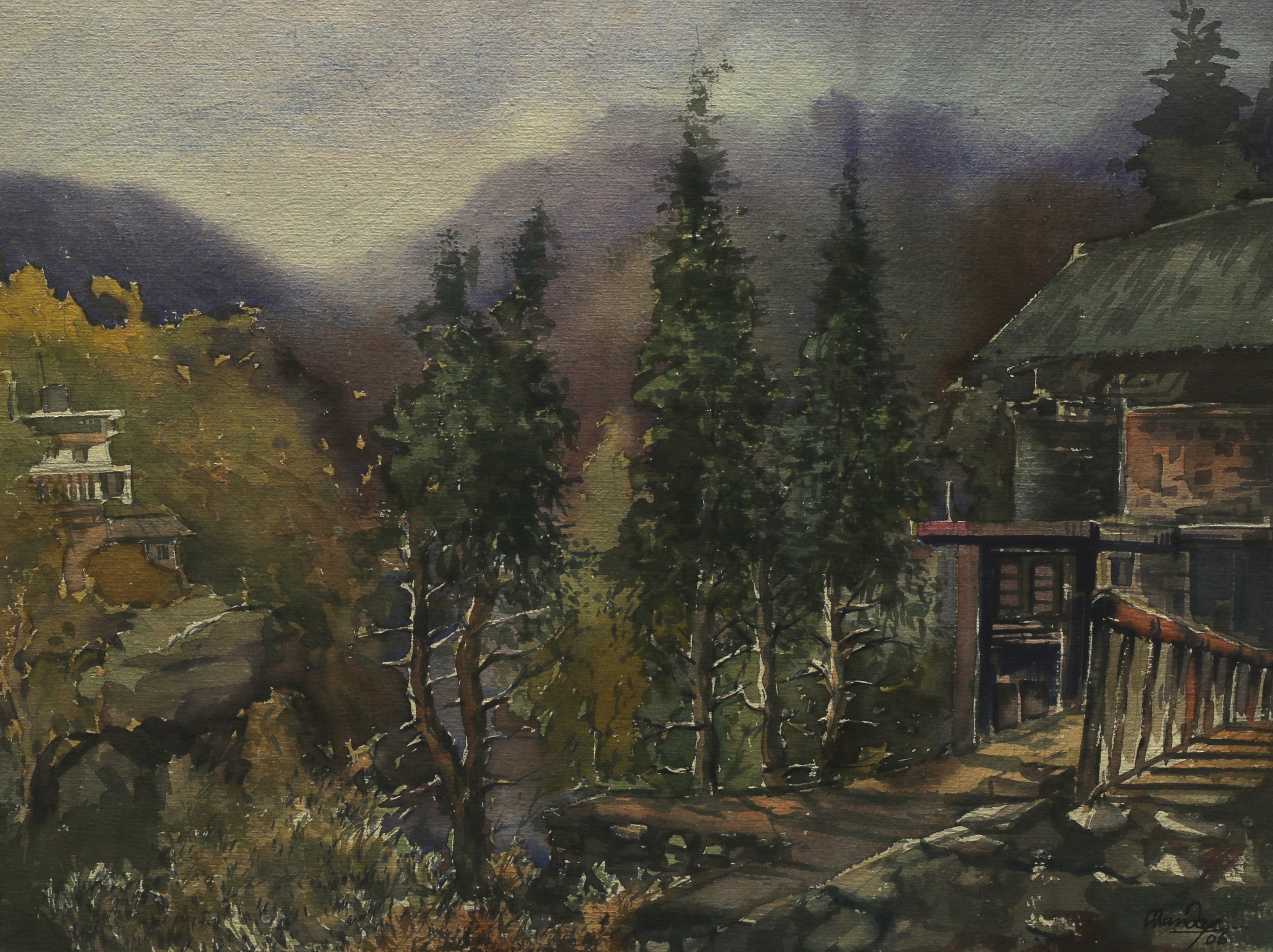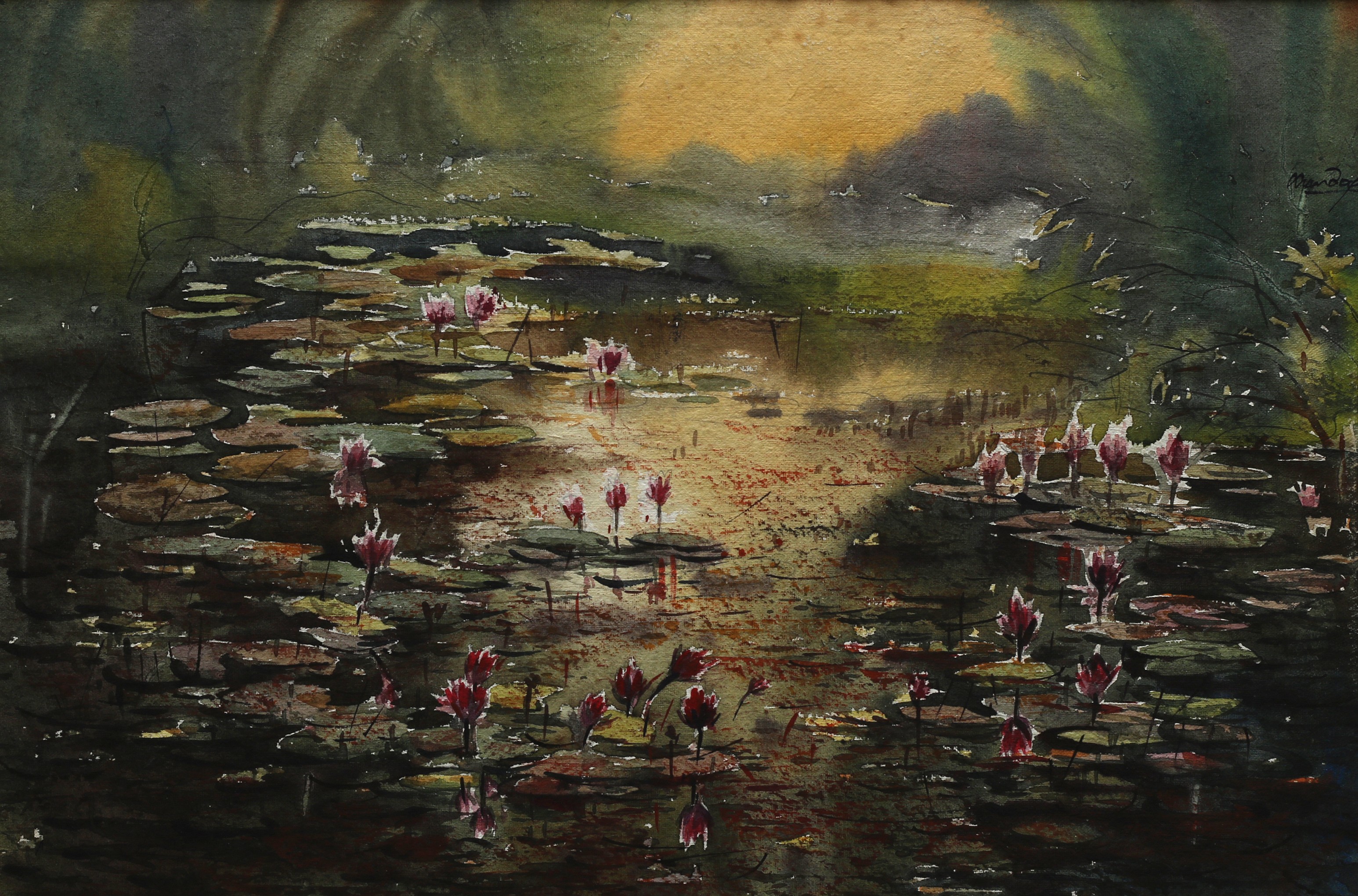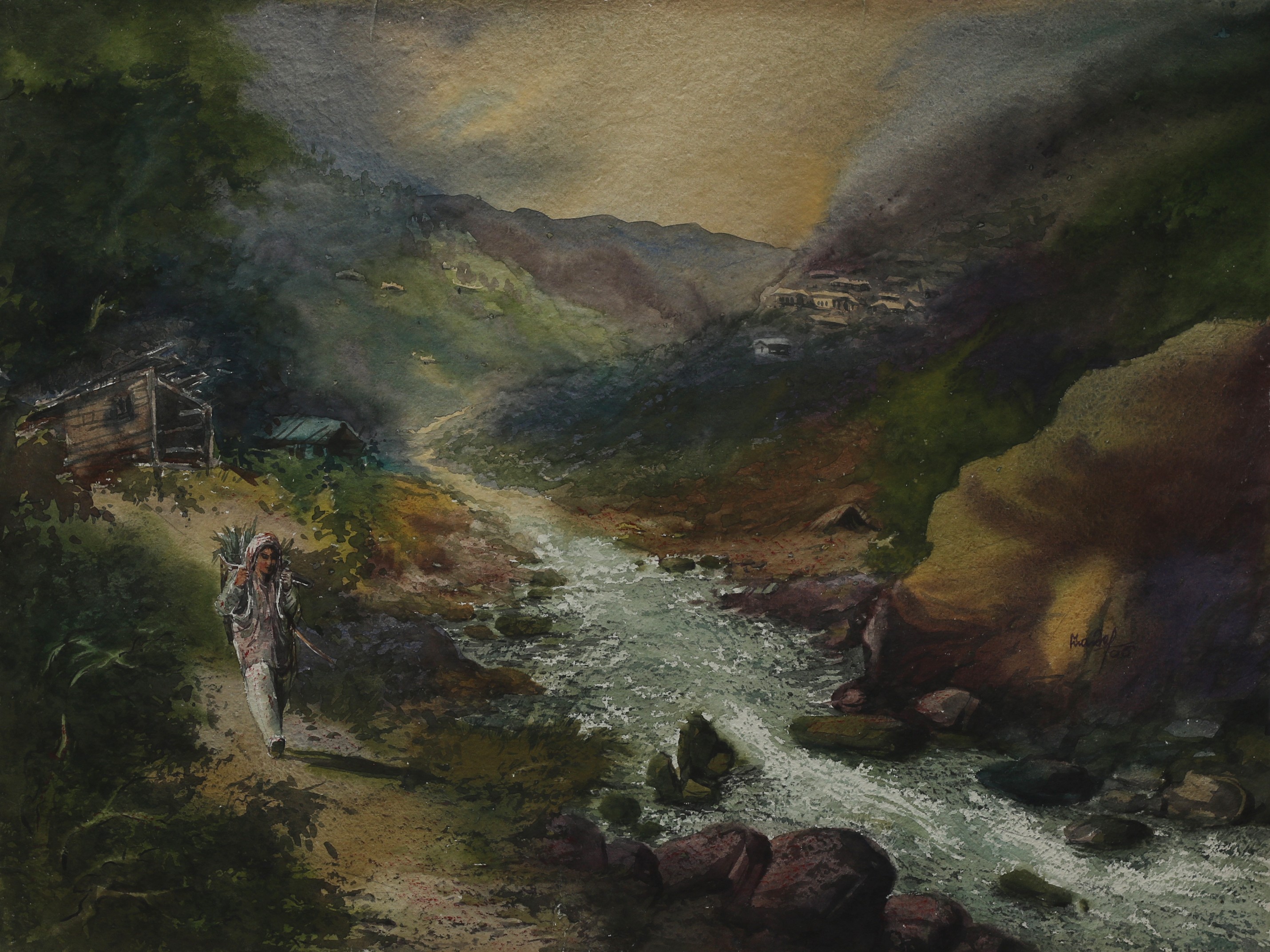 Mondal often paints in watercolour, freshness shown in his watercolour landscape paintings. Also painted the “Gangtok” series. His subjects are on day-today life of rural and urban areas. His compositions are calm and peaceful and soothing to the eyes.