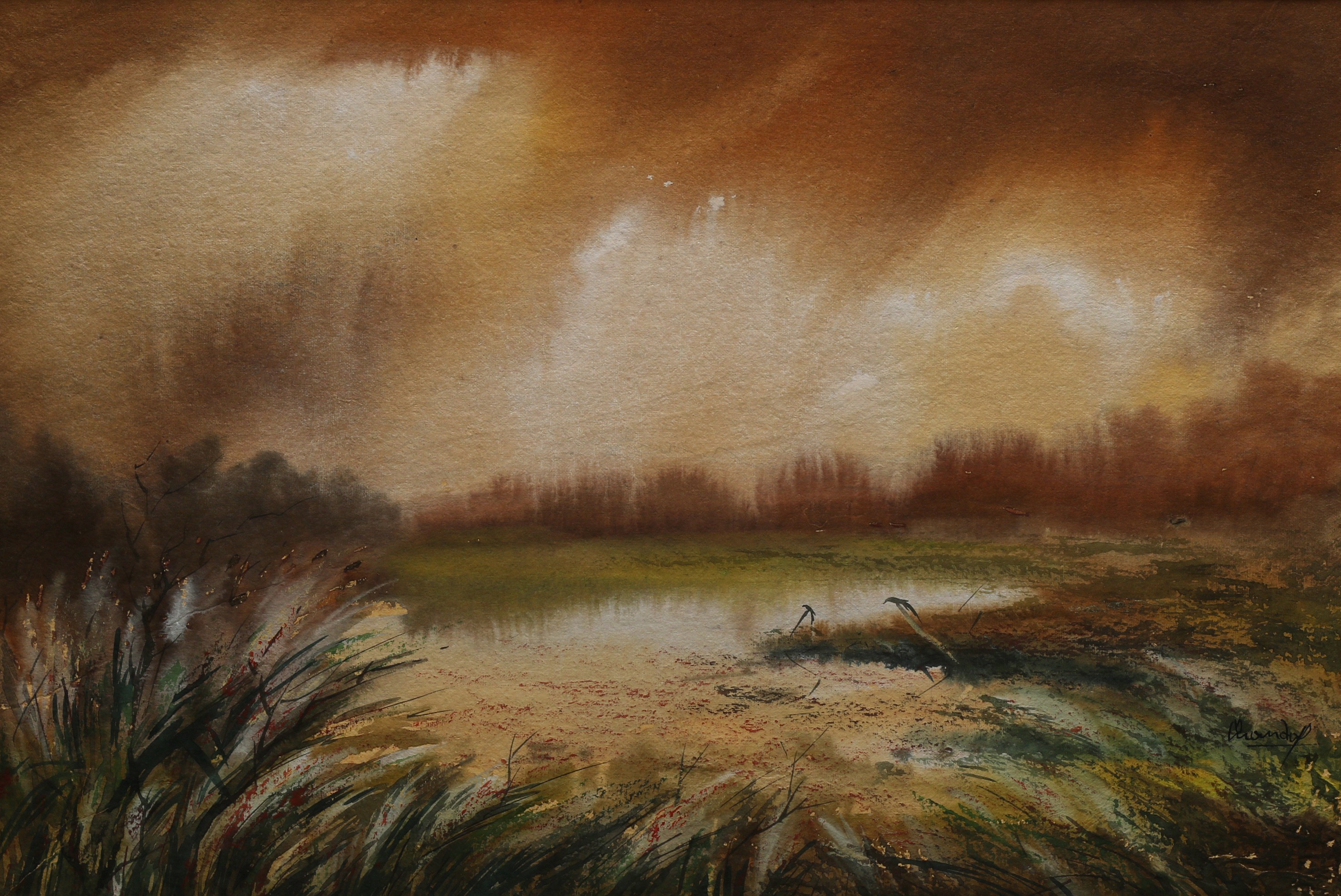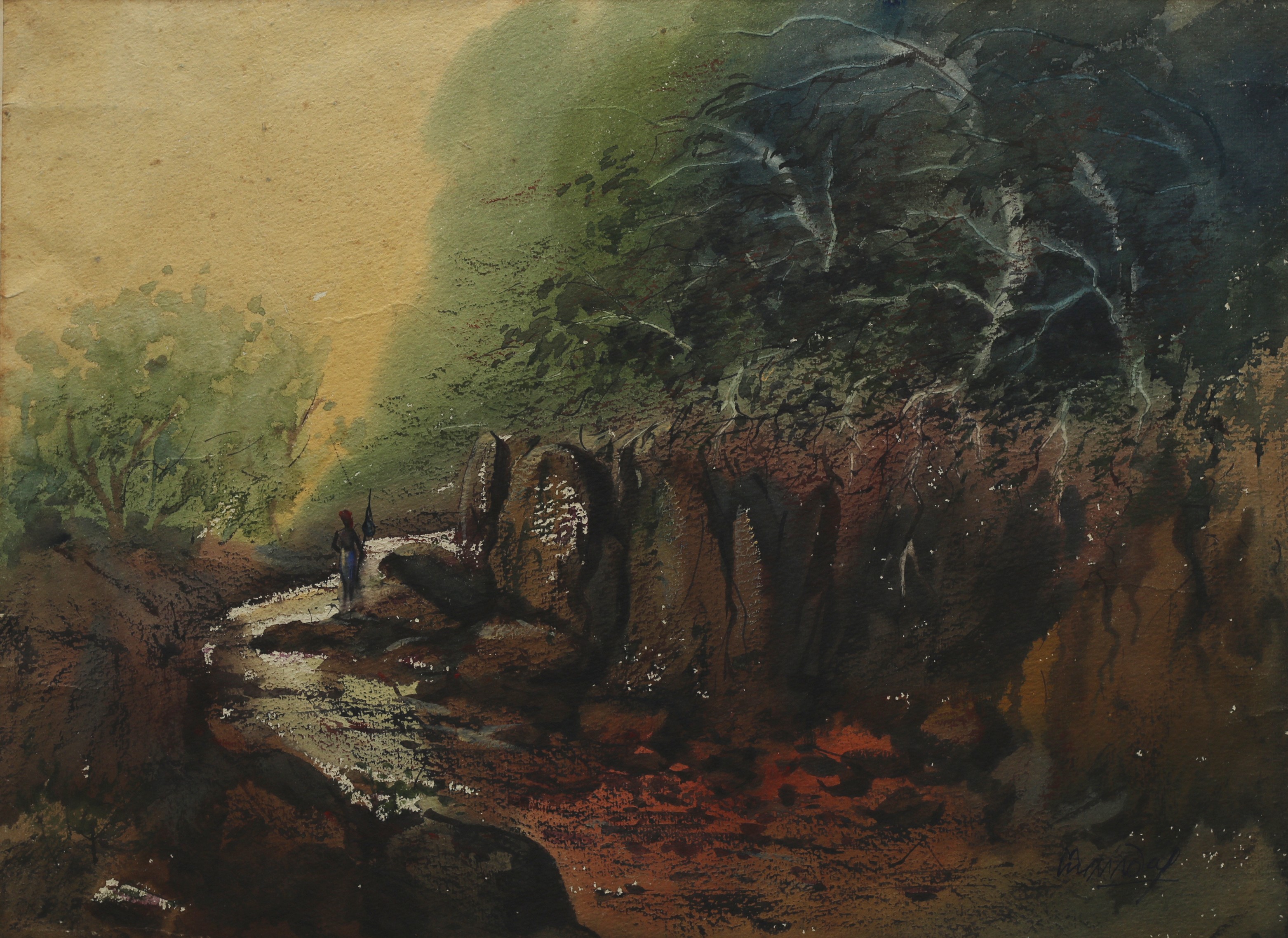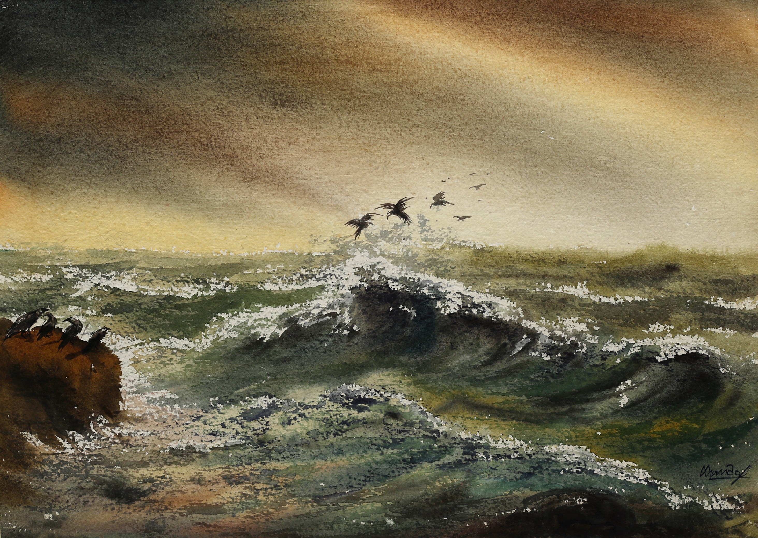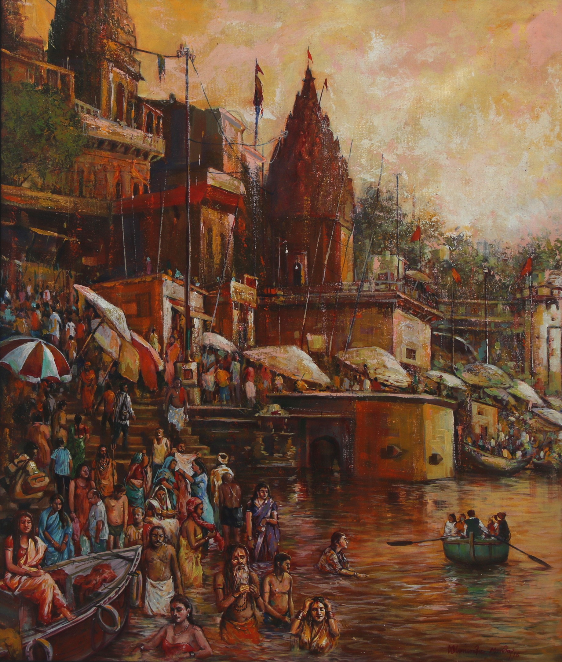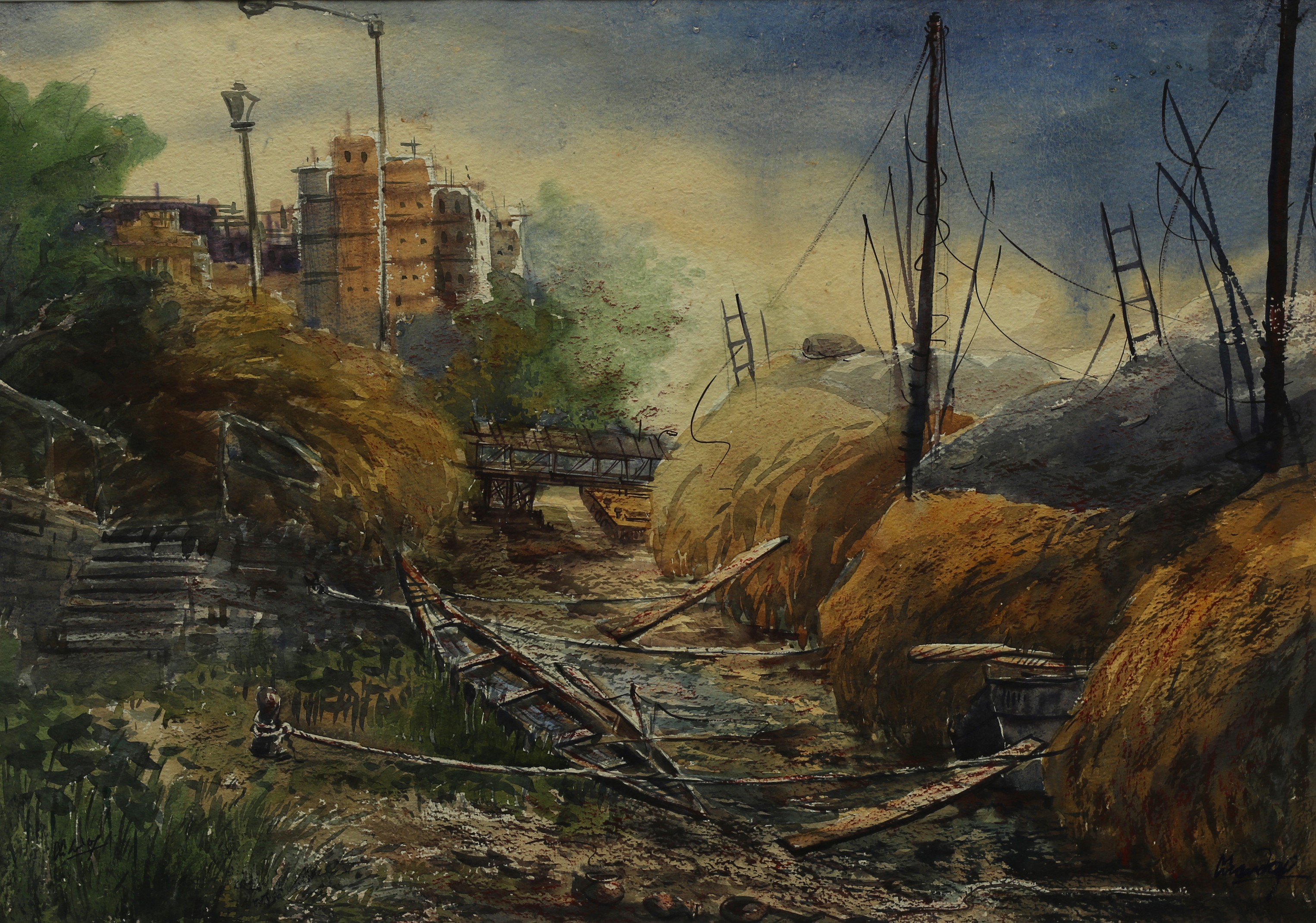 Mondal often paints in watercolour, freshness shown in his watercolour landscape paintings. Also painted the “Gangtok” series. His subjects are on day-today life of rural and urban areas. His compositions are calm and peaceful and soothing to the eyes.