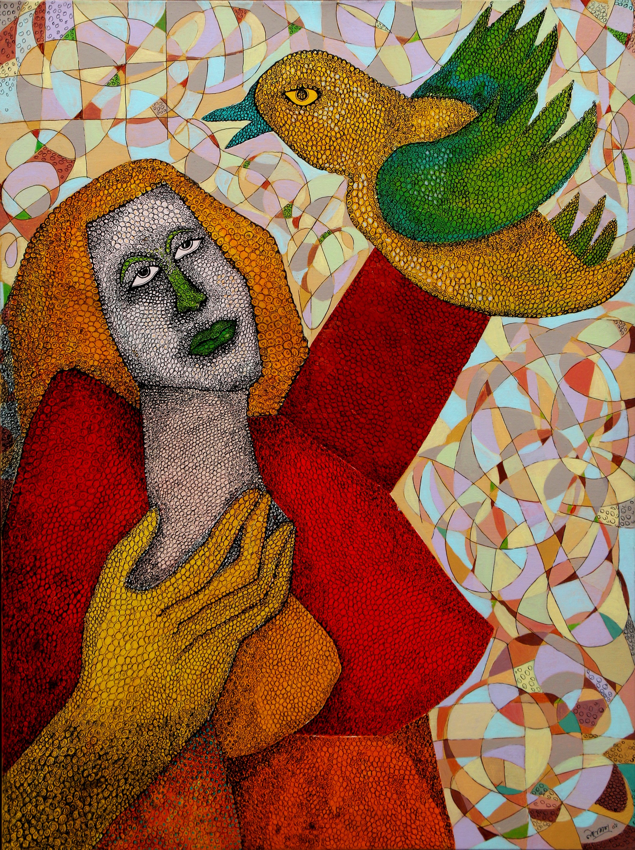According to Das, from his childhood, he observed nature and the activities around his surroundings. He has always been attracted to this dreamy world through his imagination. His paintings reflect those memories through geometric shapes. Das says, “In my childhood, I saw many migratory birds come to the lake near my village. I used to play with them. Though they were not very colourful, they inspired me.”